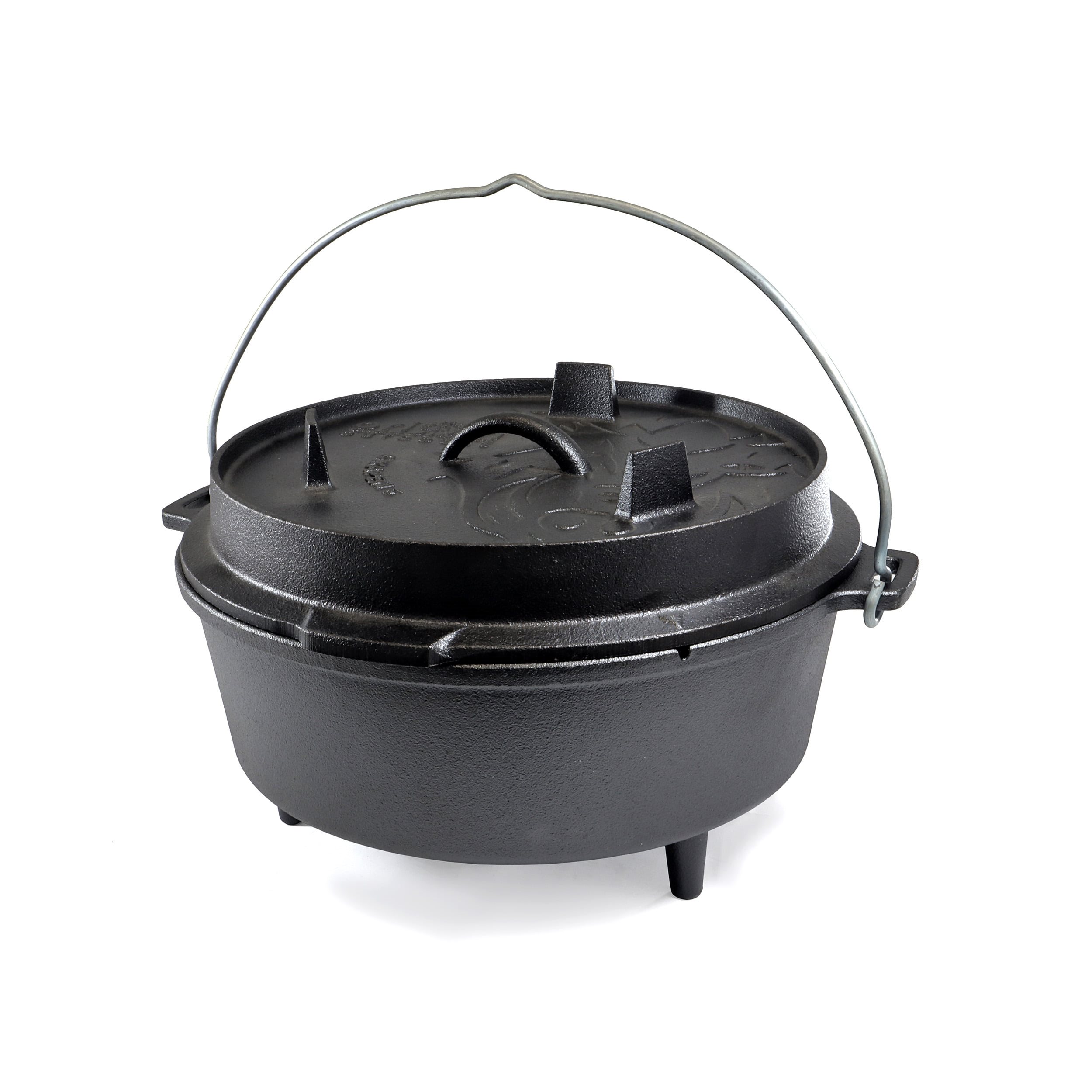 Pentola universale, nota principalmente con il nome di forno olandese o Dutch Oven. Per la sua produzione è stata utilizzata ghisa di alta qualità che distribuisce il calore in modo eccellente. Grazie a questa caratteristica, il cibo nella pentola si riscalda in modo uniforme, il che rappresenta un vantaggio significativo rispetto alle pentole realizzate con altri materiali, come ad esempio l'acciaio inossidabile. Inoltre, la ghisa mantiene ottimamente il calore, quindi il cibo preparato rimane caldo molto più a lungo. La pentola è adatta a tutti i metodi di cottura, può essere utilizzata senza problemi sul fuoco o può essere inserita direttamente nel focolare e ricoperta di cenere ardente. Il coperchio della pentola può essere utilizzato per servire o come padella improvvisata. Grazie al piccolo foro tra la pentola e il coperchio, è possibile inserire facilmente un termometro per controllare la temperatura del cibo.