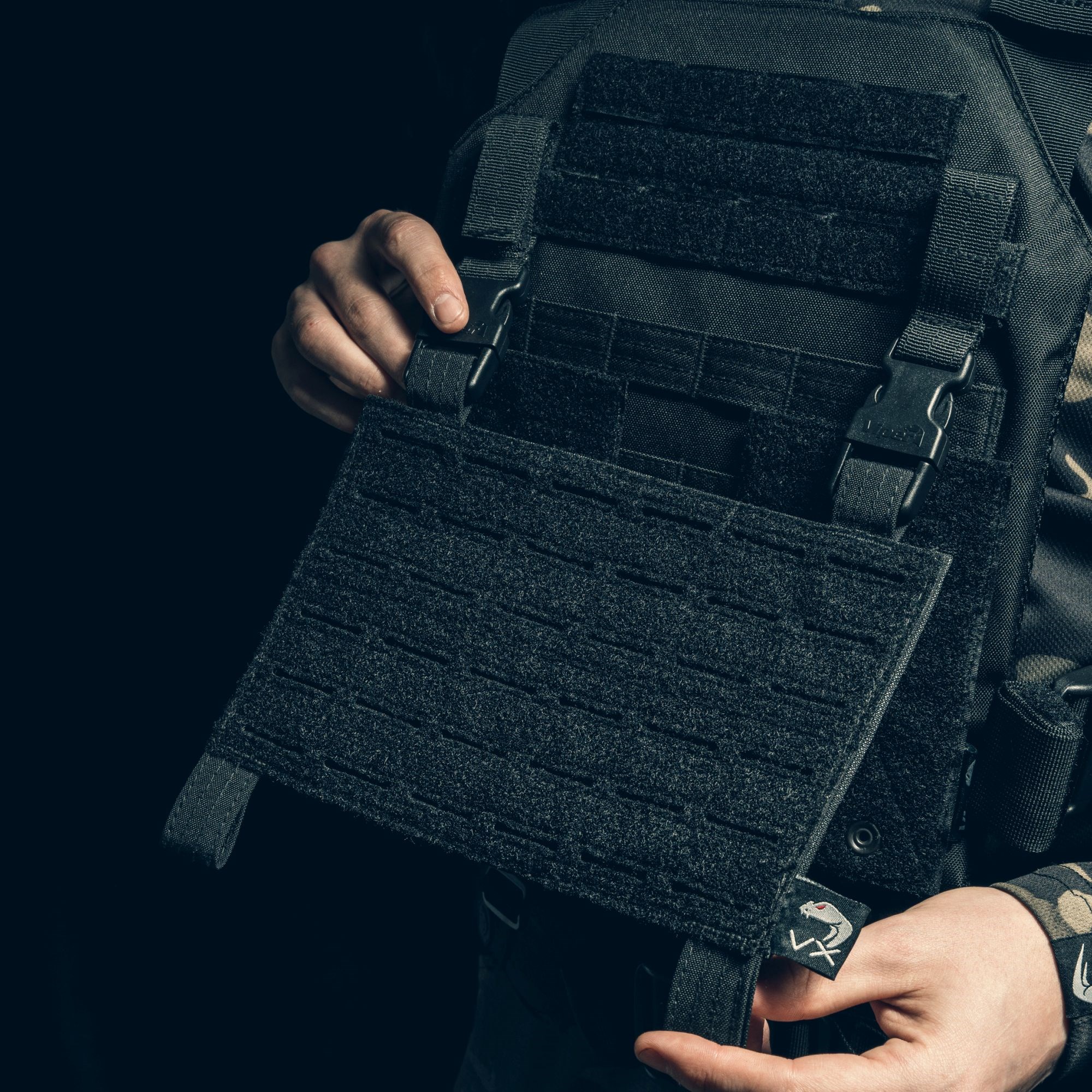 Pannello frontale/patta separata progettata principalmente per il supporto per piastre VX Buckle Up. Con aggancio modulare standard PALS/MOLLE e velcro per il fissaggio di tasche compatibili. È utile se si desidera alternare patte di diversa configurazione per armi o situazioni diverse. Può essere utilizzato anche su giubbotti di altri produttori, purché la distanza tra le fibbie di fissaggio Fastex sia la stessa.