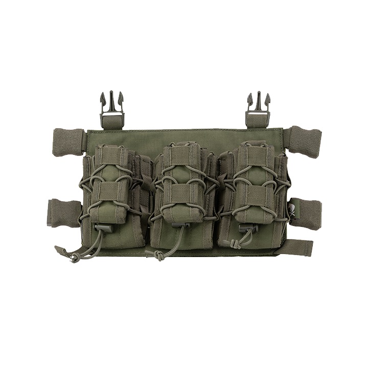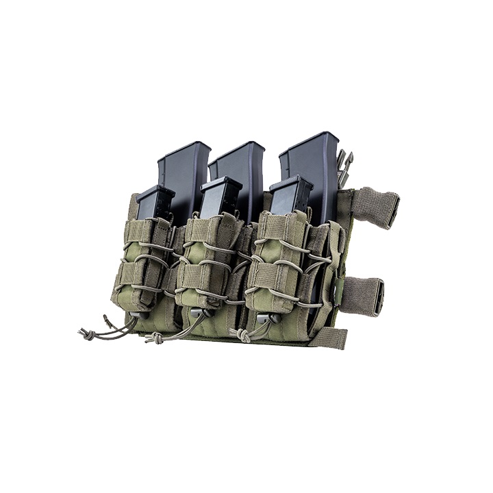 VX MAG RIG è una piattaforma completamente compatibile con il sistema VX del rinomato marchio VIPER TACTICAL. La piattaforma può contenere un totale di tre caricatori lunghi per fucili e tre caricatori per pistole. Per quanto riguarda il collegamento al sistema, sono disponibili due opzioni. La prima opzione è l'utilizzo del pannello posteriore in VELCRO, la seconda opzione sono le fibbie FASTEX progettate specificamente per il sistema VX. I caricatori sono fissati alla piattaforma con un elastico.