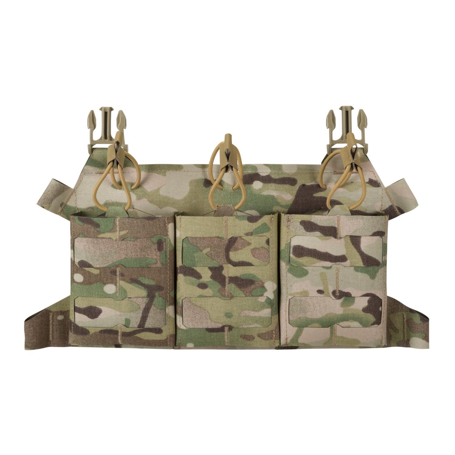 Piattaforma frontale aggiuntiva leggera progettata per i portaspare della serie BEARCAT® e SPITFIRE®. La piattaforma può contenere fino a tre caricatori di tipo SR calibro .308. I caricatori sono fissati alla piattaforma tramite un cordino elastico. La parte anteriore della piattaforma è ricoperta da una trama MOLLE/PALS incisa al laser, che può essere utilizzata per fissare altre attrezzature compatibili. La piattaforma si fissa al supporto tramite fibbie fastex e un pannello posteriore in velcro. Se necessario, la piattaforma può essere trasformata in un chest rig minimalista utilizzando cinghie di supporto (non incluse nella confezione).
