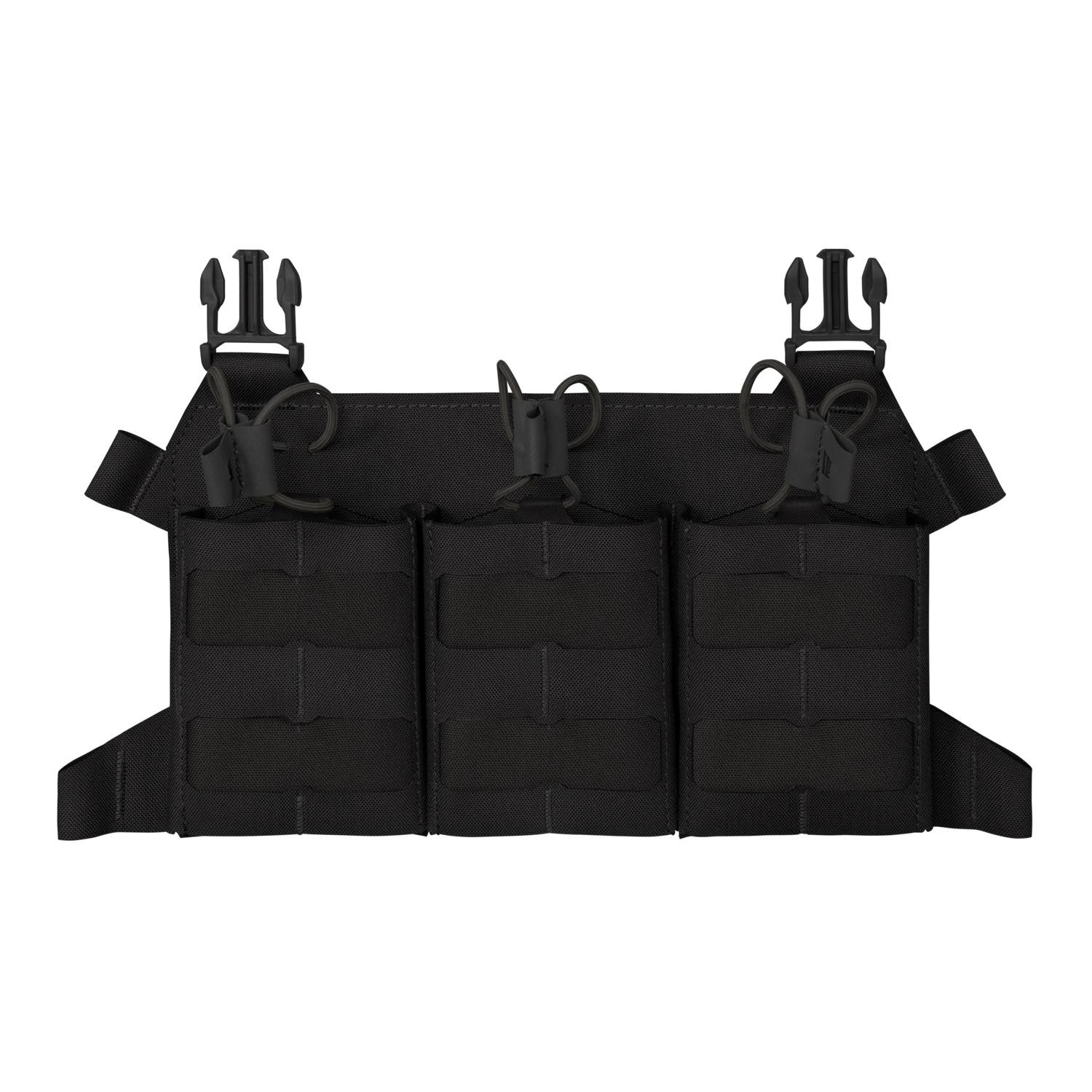 Piattaforma frontale aggiuntiva leggera progettata per i portaspare della serie BEARCAT® e SPITFIRE®. La piattaforma può contenere fino a tre caricatori di tipo SR calibro .308. I caricatori sono fissati alla piattaforma tramite un cordino elastico. La parte frontale della piattaforma è ricoperta da un intreccio MOLLE/PALS inciso al laser, che può essere utilizzato per fissare altre attrezzature compatibili. La piattaforma si fissa al supporto tramite fibbie fastex e pannello posteriore in velcro. Se necessario, la piattaforma può essere trasformata in un chest rig minimalista utilizzando cinghie di supporto (non incluse nella confezione).
