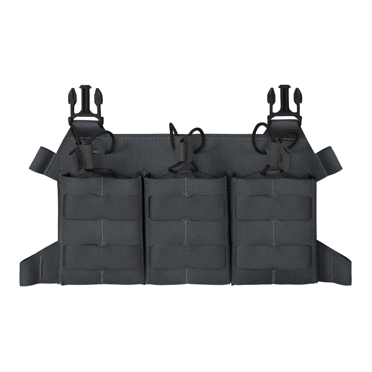 Piattaforma frontale aggiuntiva leggera progettata per i portaspare della serie BEARCAT® e SPITFIRE®. La piattaforma può contenere fino a tre caricatori di tipo SR calibro .308. I caricatori sono fissati alla piattaforma tramite un cordino elastico. La parte anteriore della piattaforma è ricoperta da una trama MOLLE/PALS incisa al laser, che può essere utilizzata per fissare altre attrezzature compatibili. La piattaforma si fissa al supporto tramite fibbie fastex e un pannello posteriore in velcro. Se necessario, la piattaforma può essere trasformata in un chest rig minimalista utilizzando cinghie di supporto (non incluse nella confezione).