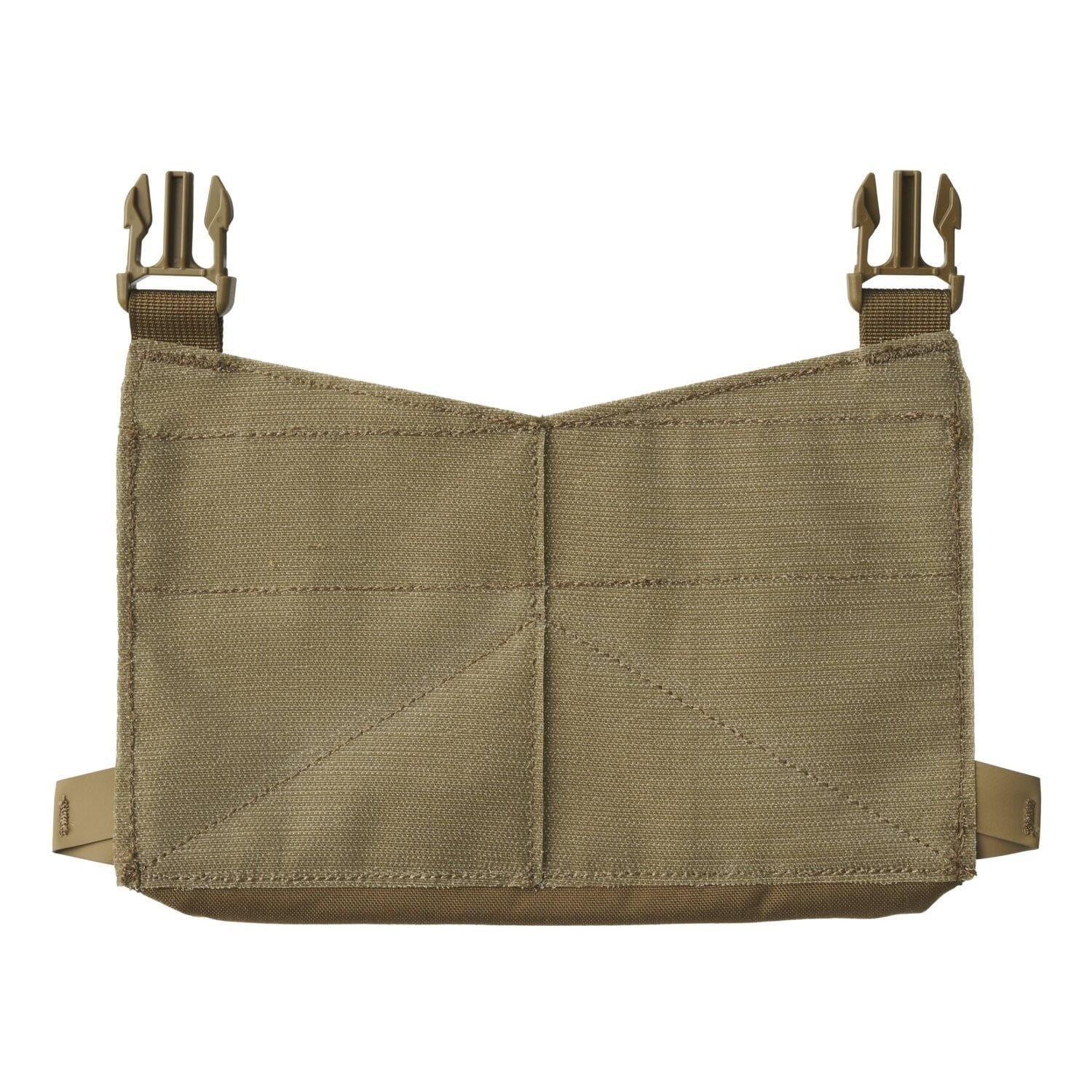 Piattaforma frontale progettata per i porta-pannelli della serie GUARDIAN. Si fissa al giubbotto tramite una coppia di fibbie in plastica e un pannello posteriore in velcro. La piattaforma è dotata di uno scomparto rivestito in velcro sia all'interno che all'esterno. Questo rivestimento può essere utilizzato per fissare ulteriori tasche e inserti in velcro.