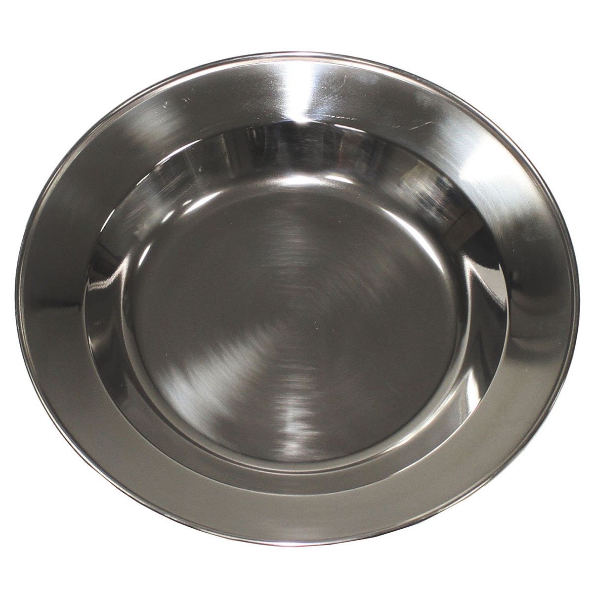 Piatto fondo (da minestra) in acciaio inossidabile. Diametro circa 25 cm. Altezza 2,5 cm. Peso 220 grammi.