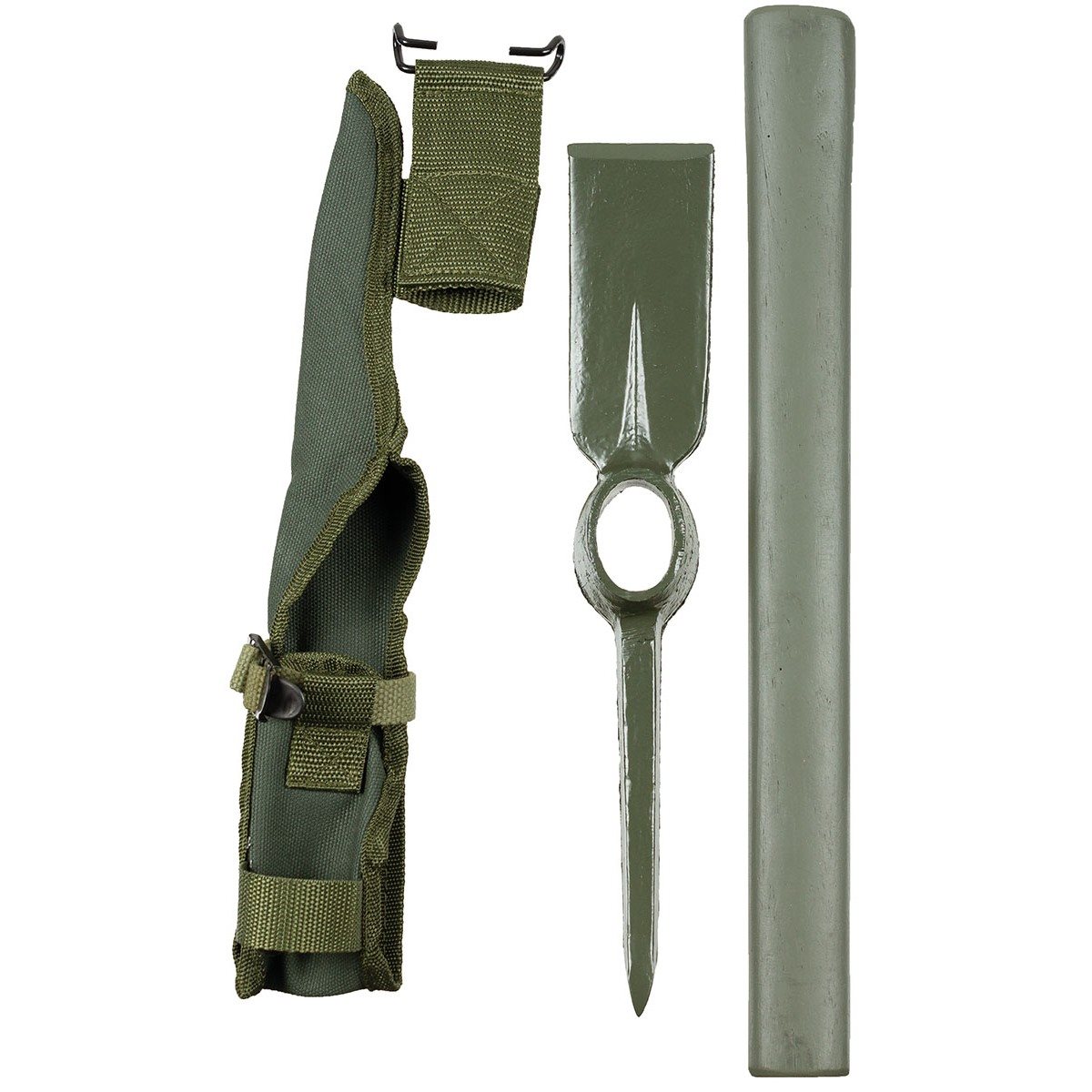 Piccone di tipo americano, fornito con custodia in tessuto.