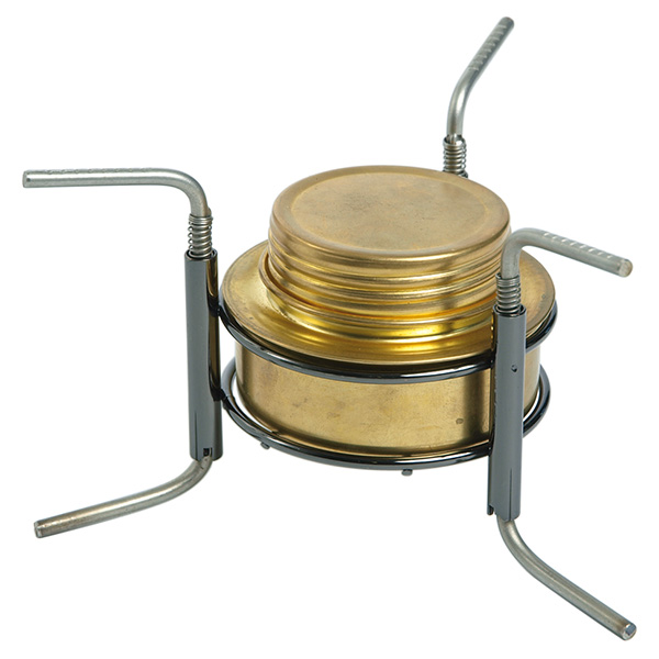 Piedini per fornello a alcool in ottone SPIRIT. Il fornello non è incluso nella fornitura. I piedini garantiscono la stabilità del fornello e dei recipienti di cottura. Pieghevoli.