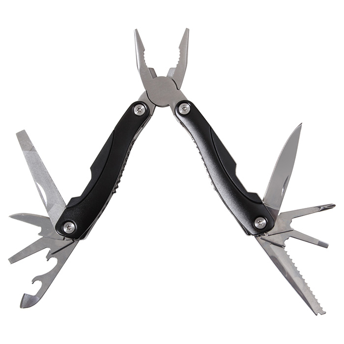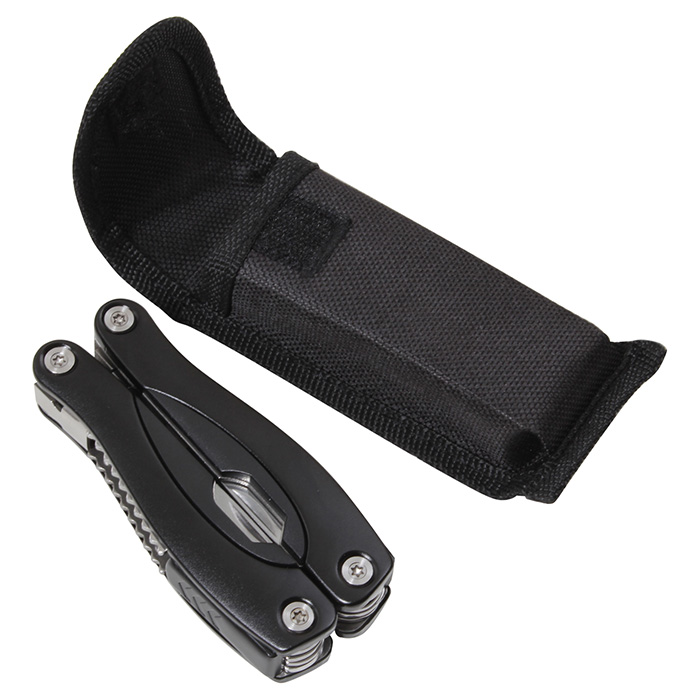 Pinze multifunzionali in custodia di nylon nera. Lunghezza: aperte 16 cm, chiuse 10 cm. Ulteriori informazioni