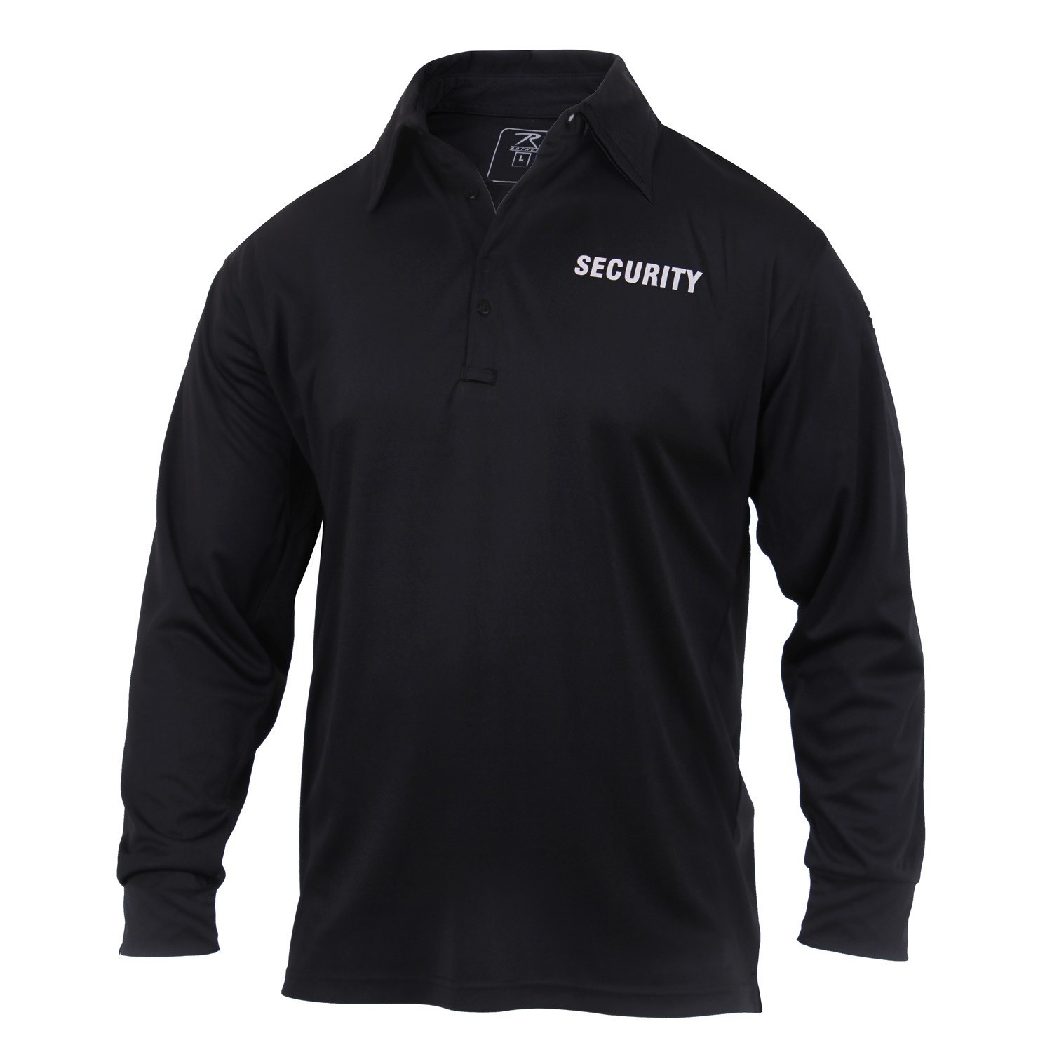 La maglietta di alta qualità della ditta ROTHCO offre comfort anche nelle giornate più calde, grazie al materiale con cui è realizzata. Il materiale utilizzato è ad asciugatura rapida e allontana l'umidità dal corpo. La maglietta ha un taglio standard con tre bottoni sul collo. Sul petto è presente una piccola scritta stampata "security" e la stessa scritta è presente su tutta la schiena. La maglietta è destinata principalmente alle agenzie di sicurezza. I polsini delle maniche sono realizzati in materiale elastico. La maglietta può essere indossata sotto l'uniforme, il gilet o la giacca.