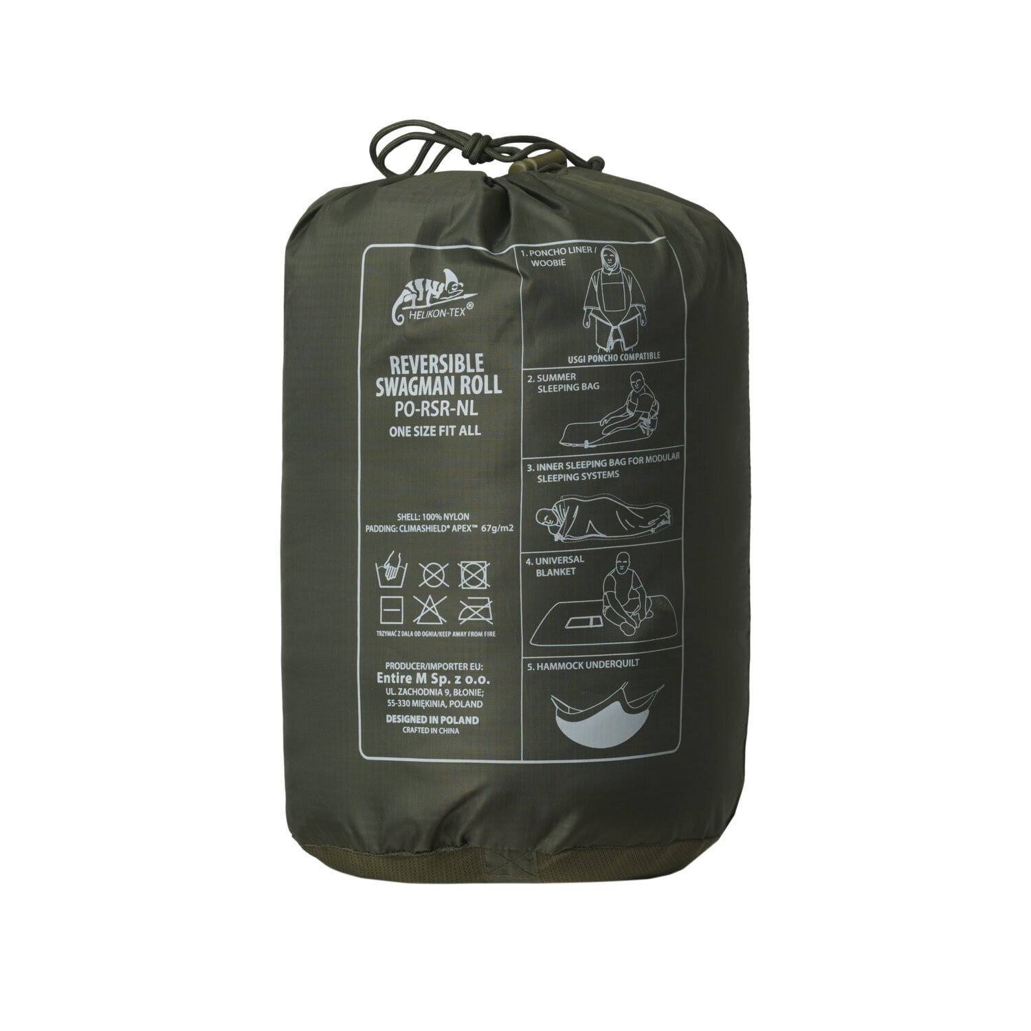Poncho multifunzionale: non solo protegge dalle intemperie, ma può essere utilizzato come sacco a pelo di emergenza, inserto nel sacco a pelo o come coperta separata o isolante per amaca. L'intero poncho può essere riposto nella tasca frontale con cerniera, pertanto la custodia è parte integrante del poncho stesso. Design mimetico su entrambi i lati.