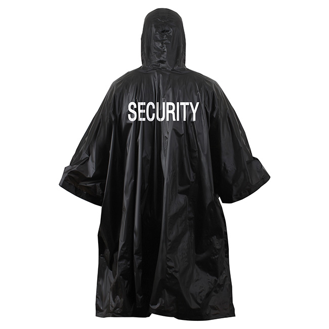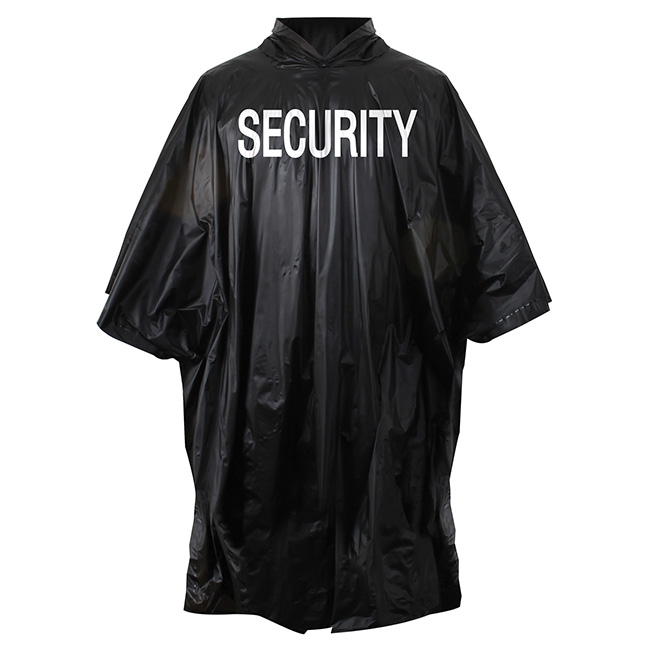 Poncho impermeabile leggero e compatto con ampio cappuccio. Ideale come capo di emergenza. Scritte SECURITY sul davanti e sul retro.