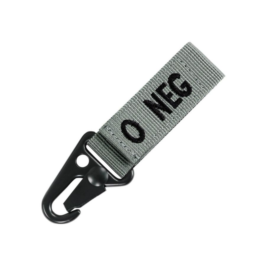 Portachiavi con indicazione del gruppo sanguigno e del fattore RH del portatore. Può essere indossato alla cintura, al PALS, alle chiavi o a molti altri oggetti. Si fissa con una clip metallica a coccodrillo o infilandolo in un foro. Larghezza del foro: 5 cm.