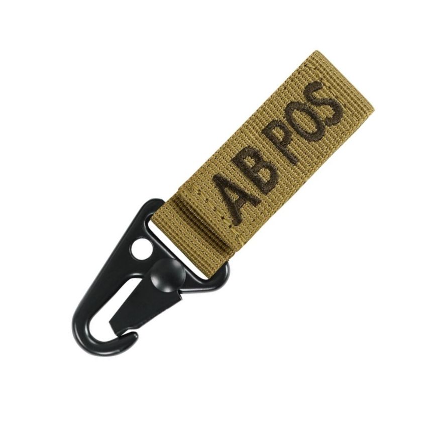 Portachiavi con indicazione del gruppo sanguigno e del fattore RH del portatore. Può essere utilizzato su cintura, PALS, chiavi o molti altri oggetti. Si fissa tramite una clip metallica a coccodrillo o infilandolo. Larghezza del foro: 5 cm.