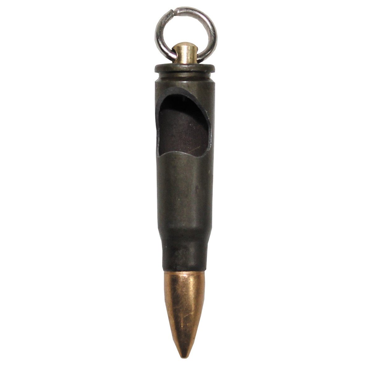 Portachiavi a forma di cartuccia originale 7,62 x 39 per fucile automatico AK47. L'apertura nella cartuccia funge da apribottiglie originale.