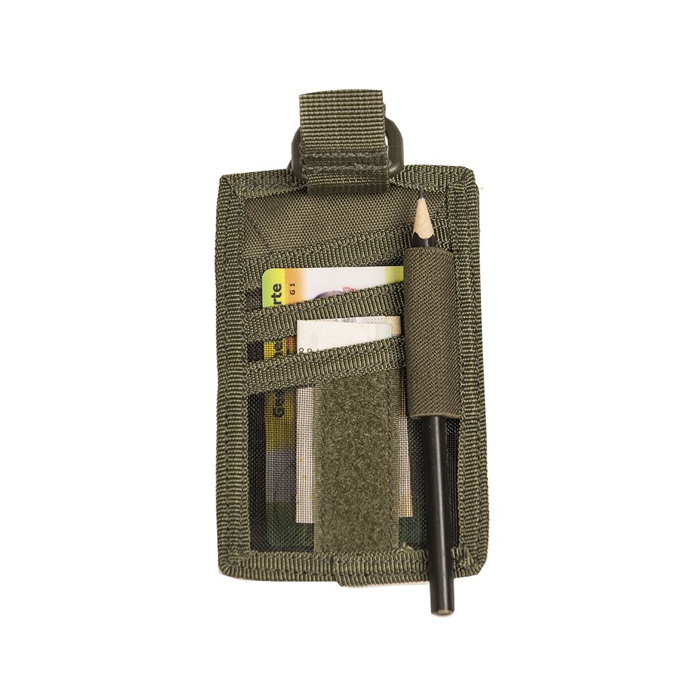Pratico porta documenti con cordino e possibilità di aggancio alla cintura. La parte trasparente del porta documenti può essere rimossa tramite il velcro sul retro e utilizzata separatamente su qualsiasi parte dell'equipaggiamento dotata di pannello in velcro, come gilet tattico, camicia, giacca, zaino, ecc. Sul retro della custodia è presente una cinghia, anch'essa in velcro, che consente di fissarla alla cintura. Grazie al profilo piatto della custodia, è possibile indossarla comodamente anche sotto l'uniforme o gli indumenti.