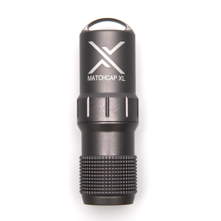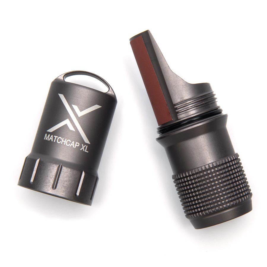 Il MATCHCAP™ è un astuccio per fiammiferi quasi indistruttibile prodotto dalla ditta EXOTAC. Grazie agli accendini integrati in fosforo rosso sul lato coperto dell'astuccio, avrete sempre a portata di mano la soluzione ai problemi di trasporto e, soprattutto, di utilizzo dei fiammiferi in qualsiasi condizione atmosferica. In poche parole, non si inumidiranno mai più. La custodia XL può contenere non solo fiammiferi, ma anche un accendino.
