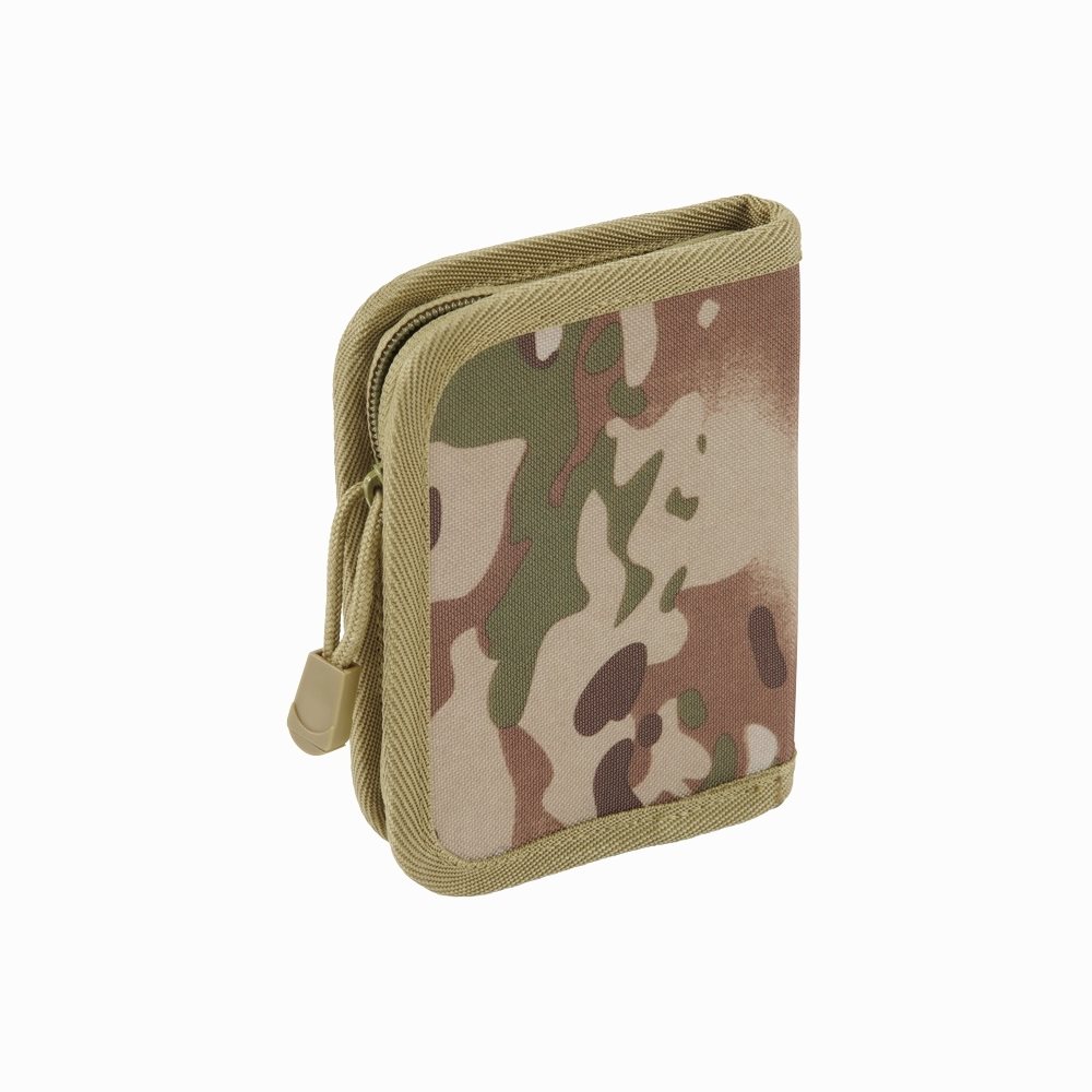 Portafoglio resistente che offre spazio sufficiente per i vostri documenti, monete e banconote. È stato realizzato in poliestere 600D di alta qualità. All'interno troverete una grande tasca per le monete metalliche, un piccolo organizer per le carte, una finestra trasparente per il passaporto e due lunghi scomparti per le banconote. Il portafoglio si chiude con una cerniera con tiretto.