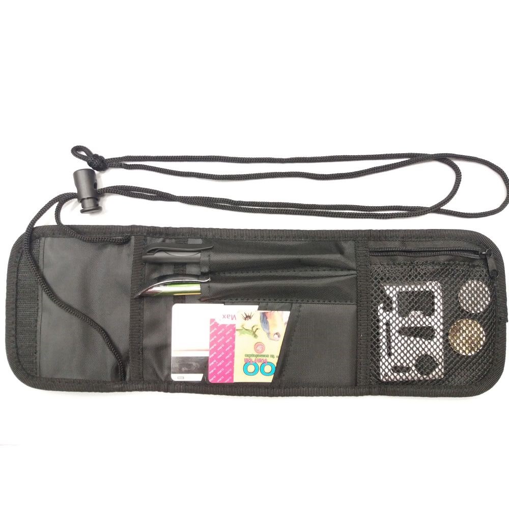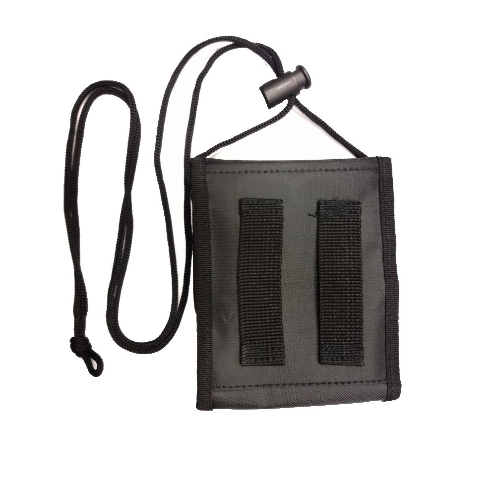 Pratica custodia/portafoglio con cordino da appendere al collo e passante per fissarlo alla cintura. Numerose tasche interne, chiusura con velcro. Dimensioni: 13,5 x 11,5 cm (chiuso), 33 x 11,5 cm (aperto). Materiale: 100% poliammide. Ulteriori informazioni