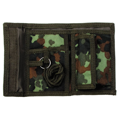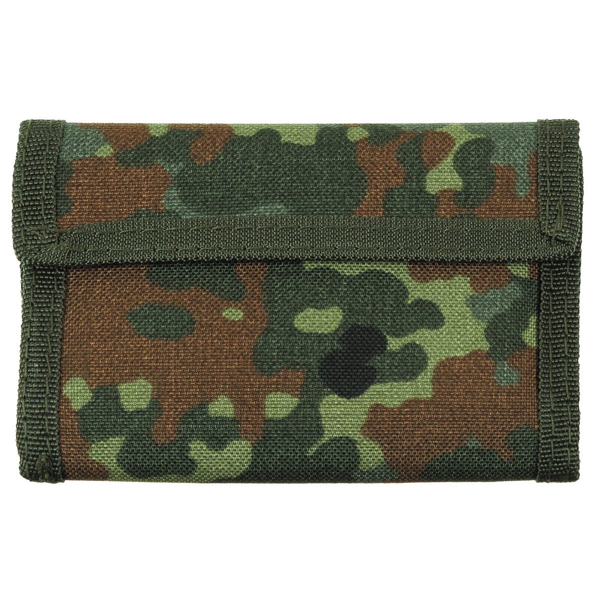 Portafoglio mimetico con motivo mimetico tedesco Flecktarn. Chiusura con velcro. Materiale: 100% poliestere.