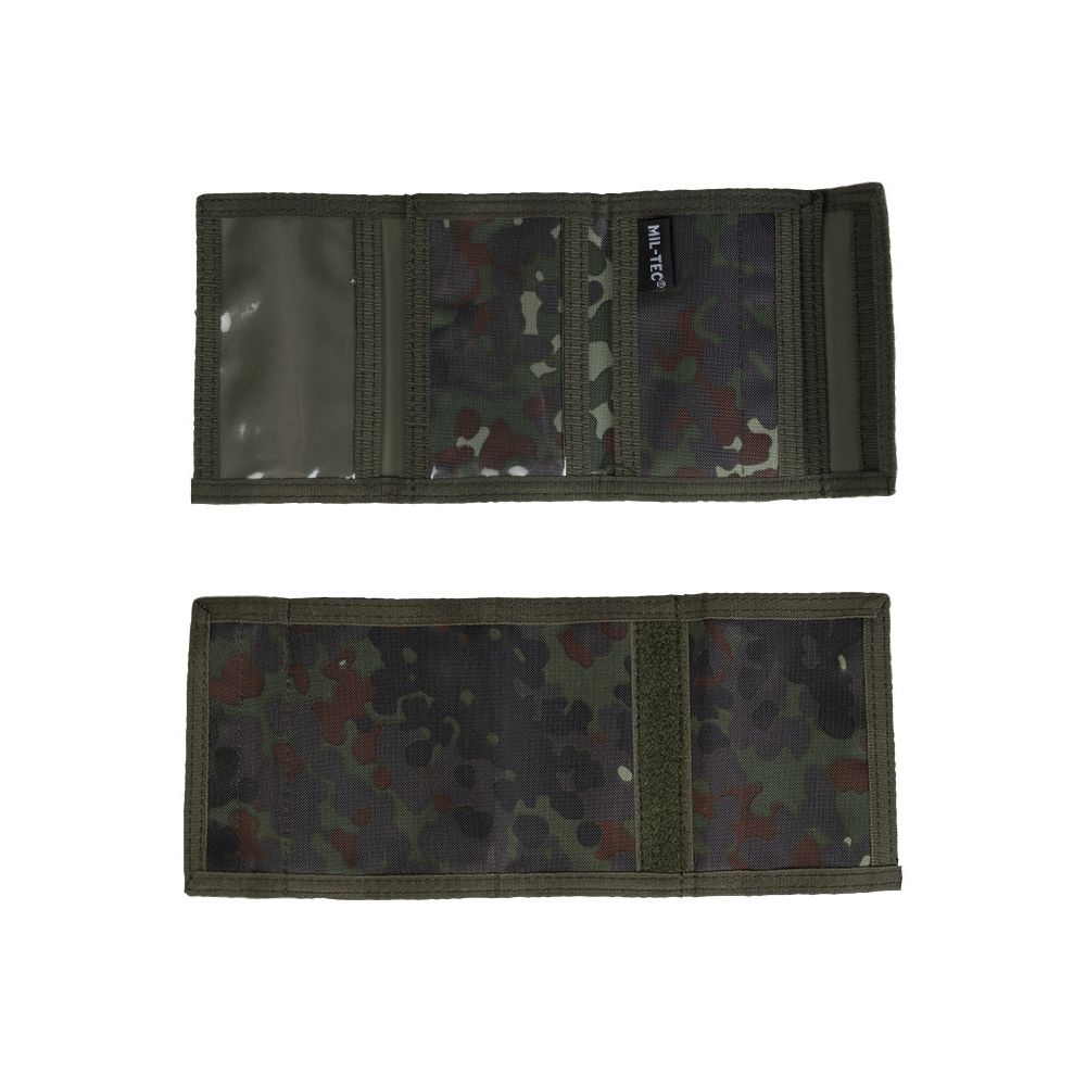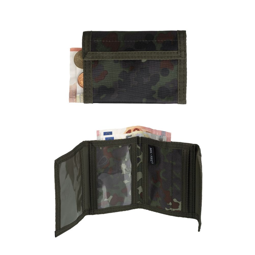 • Portafoglio in nylon con tasca per monete e tasche trasparenti per documenti.