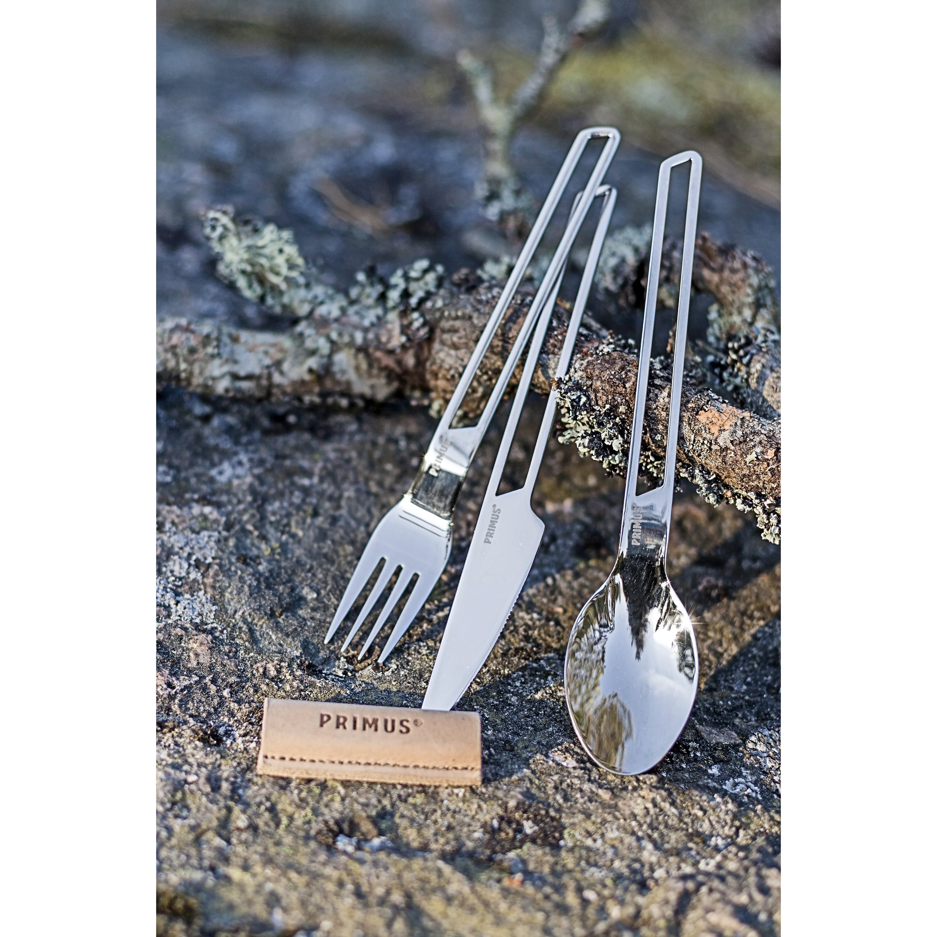 L'attraente set di posate della serie Primus Campfire comprende un cucchiaio, una forchetta e un coltello, tutti realizzati in acciaio inossidabile di alta qualità. Il set presenta un design non solo elegante, ma anche pratico. Il supporto in pelle mantiene le posate insieme e impedisce loro di tintinnare, integrandosi perfettamente con lo stile generale. insieme e ne permette che sbattano, il che si abbina perfettamente allo stile generale. Dimensioni: 18,5 x 4 cm.
