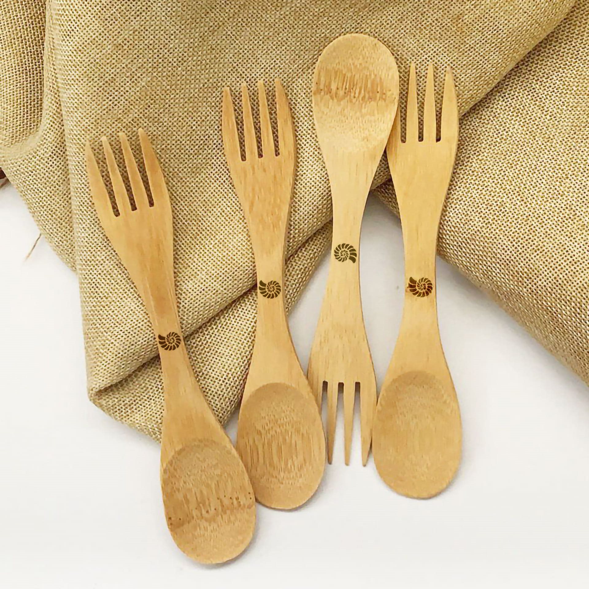 Posate eccezionalmente leggere (7 g) - cucchiaio e forchetta in un unico pezzo. Realizzate in bambù, lunghezza 17 cm, peso 7 g. Ulteriori informazioni
