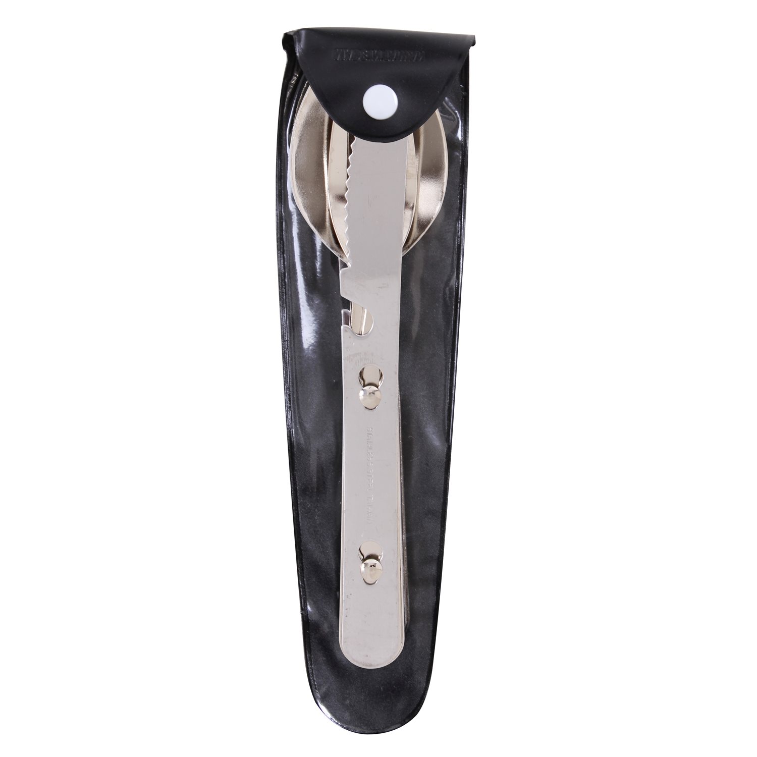 Pratiche posate pieghevoli ROTHCO. Comprende: coltello, forchetta e cucchiaio. Custodia in vinile. Materiale: acciaio inossidabile. Ulteriori informazioni