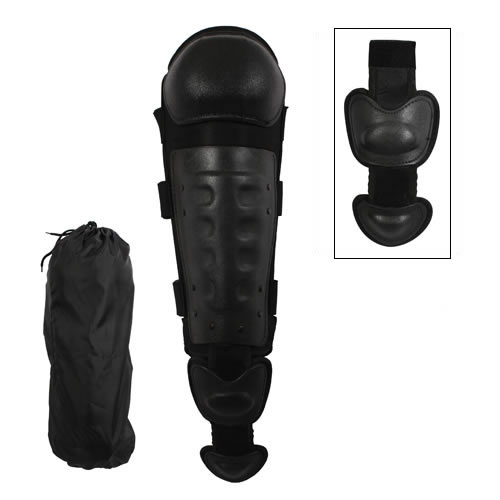 Protezione per le gambe destinata alle forze dell'ordine. Comprende protezione per il dorso del piede, lo stinco e il ginocchio. Realizzata in policarbonato riflettente con fodera in tricot. Fornita in coppia. Include custodia per il trasporto.