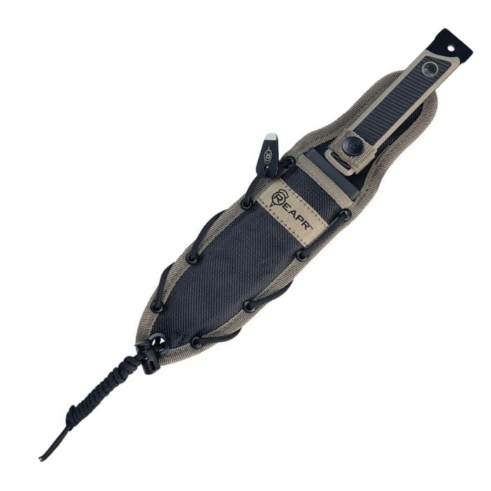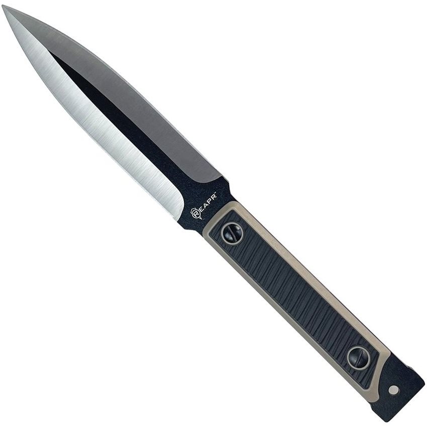 Robusto coltello da sopravvivenza full-tang che, una volta rimossi i manici, può essere utilizzato come punta di una lancia da caccia improvvisata. La lama con doppio filo liscio è realizzata in resistente acciaio inossidabile 420 con un sottile rivestimento in polvere che ne migliora le proprietà meccaniche. I manici del coltello sono realizzati in materiale TPR con texture antiscivolo. Se necessario, i manici possono essere facilmente rimossi dall'impugnatura utilizzando l'attrezzo in dotazione. Il robusto fodero da cintura è realizzato in nylon balistico 168D ed è compatibile con il sistema di aggancio modulare MOLLE/PALS. Il coltello è dotato di un cordino in paracord per fissarlo all'equipaggiamento o al manico della lancia.