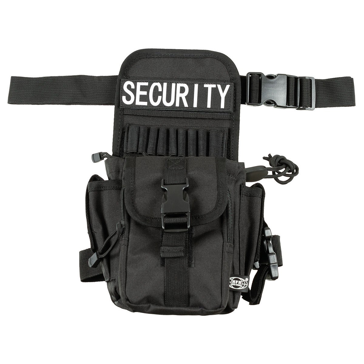 Pratico marsupio con logo SECURITY su chiusura in velcro. Cinghie rimovibili. Sette scomparti separati. Portamatite rimovibile per 10 penne. Materiale: 100% poliestere.