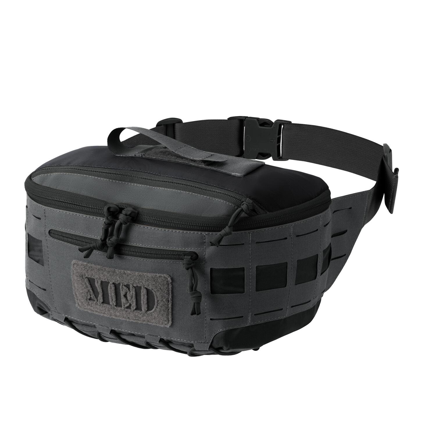La tracolla della borsa è regolabile in lunghezza e si chiude con una fibbia in plastica. Nella parte anteriore è presente un pannello in velcro per le vostre toppe VELCRO. Sotto il pannello si trova una tasca piatta con chiusura a zip, ideale per riporre, ad esempio, guanti monouso. Sul coperchio sono presenti due tasche, una destinata alle forbici mediche, l'altra alle schede TCCC (Tactical Combat Casualty Care). L'interno è rivestito in morbido pile ed è facilmente regolabile grazie agli elastici in velcro in dotazione. Grazie al sistema di aggancio modulare esterno standard MOLLE/PALS e all'elastico sul fondo, è possibile dotare il marsupio di ulteriore attrezzatura medica o tattica.