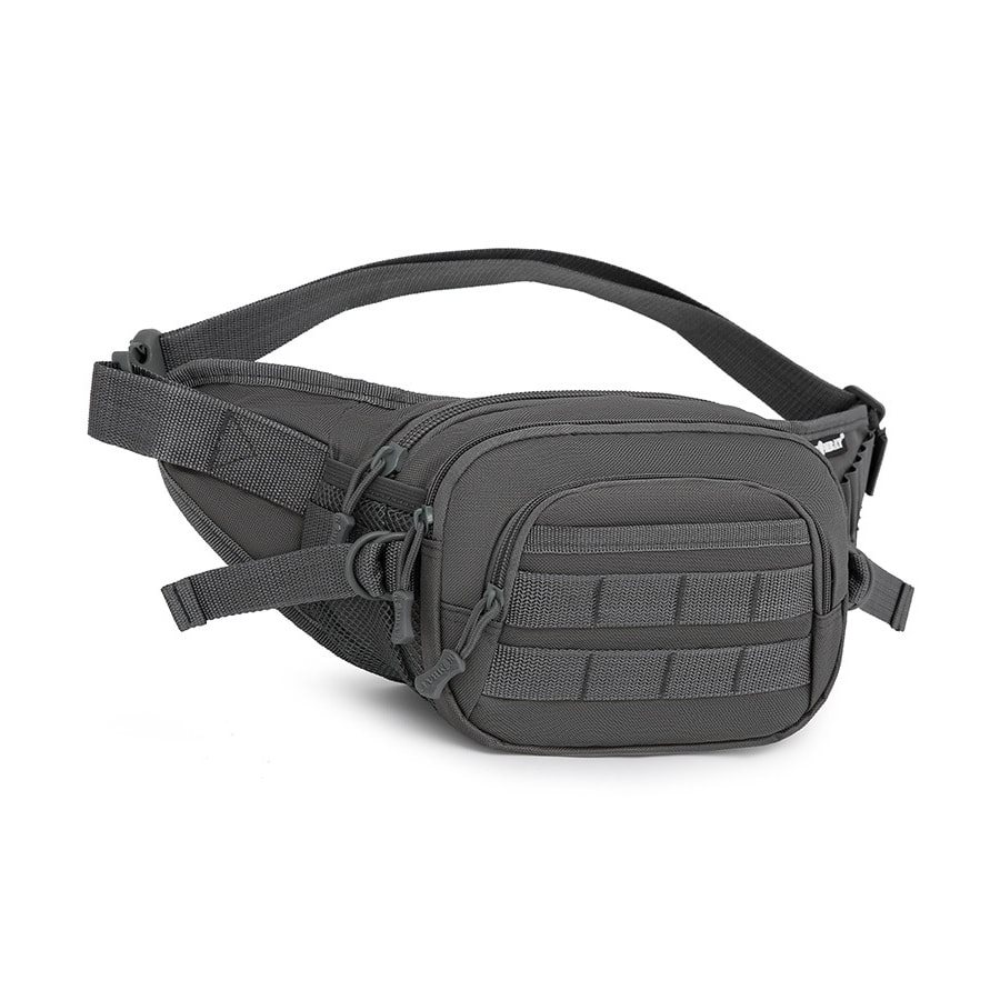 Marsupio leggero dotato di sistema di aggancio frontale modulare standard MOLLE/PALS. La tracolla è regolabile in lunghezza e si chiude con una fibbia in plastica Fastex. I lati sono dotati di anelli a D in plastica, cinghie di compressione e due tasche in rete. Sulla parte anteriore si trova un piccolo scomparto piatto e tre tasche accessibili tramite cerniera. L'ultima tasca si trova sul retro del marsupio.