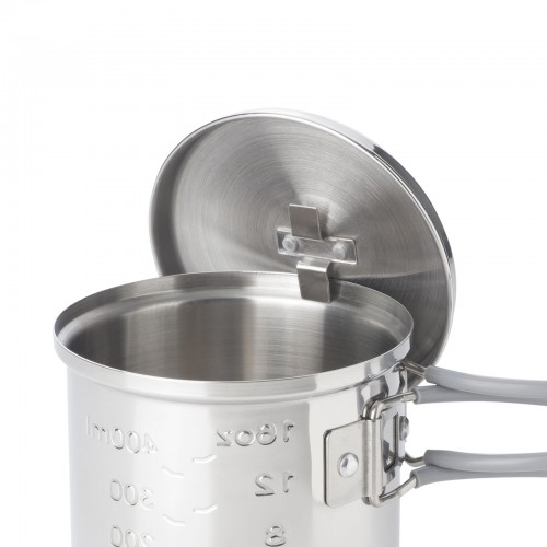 La tazza è dotata di manici pieghevoli con isolamento termico, in modo che non scottino le mani quando sono caldi e non vi sia il rischio di ustioni. All'interno è presente una scala graduata che indica ml (200, 300 e 400) e unità oz. (8, 12 e 16). La scala è stampata, quindi è resistente e praticamente indistruttibile per abrasione o alte temperature. La scala graduata è stampata, quindi è resistente e praticamente indistruttibile all'abrasione o alle alte temperature.