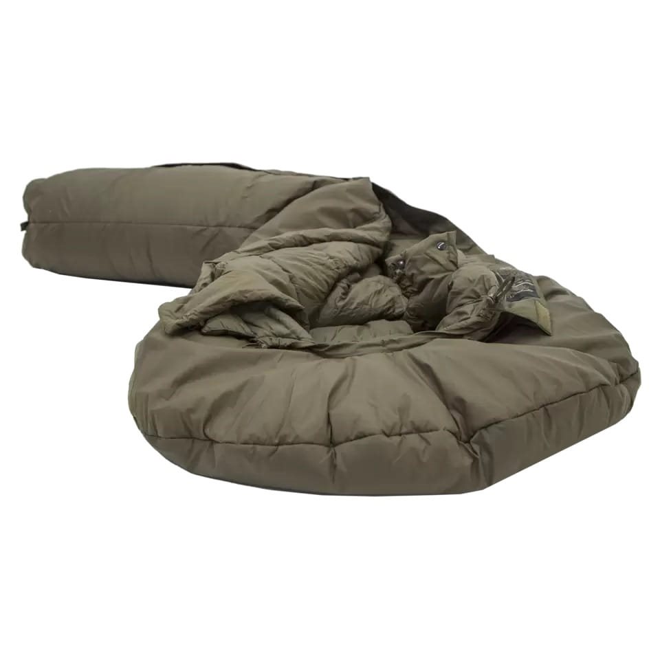 Sacco a pelo invernale professionale a mummia utilizzato dalle unità speciali della NATO in condizioni artiche. Nonostante l'eccellente comfort termico, offre un peso relativamente basso e una facile ripiegabilità.