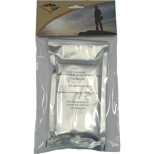 Sacco a pelo di emergenza, confezionato sottovuoto dal produttore britannicoBCB-international, che fornisce attrezzature all'esercito britannico.