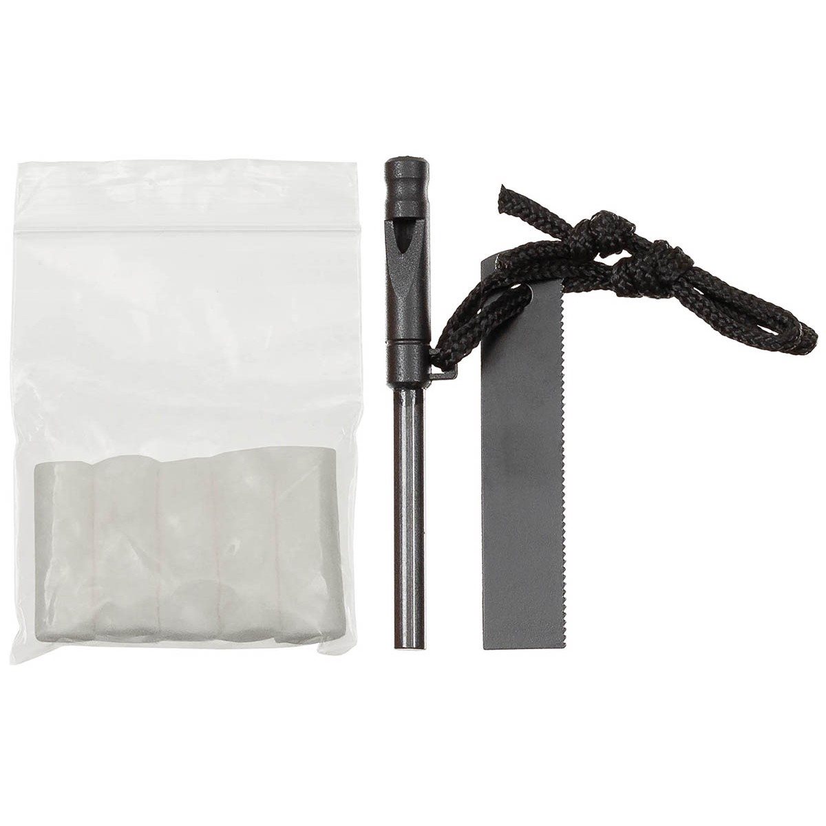 Sacco a pelo leggero di emergenza che garantisce protezione dal freddo, dal caldo e dal vento. Il sacco a pelo è realizzato in polietilene, con un lato rivestito in foglio di alluminio. Il sacco a pelo è dotato di un piccolo accendino con fischietto e cinque pezzi di cotone per accendere il fuoco. Il sacco a pelo può essere facilmente riposto in una custodia con chiusura a cordoncino, alla cui estremità è presente un altro fischietto di segnalazione.