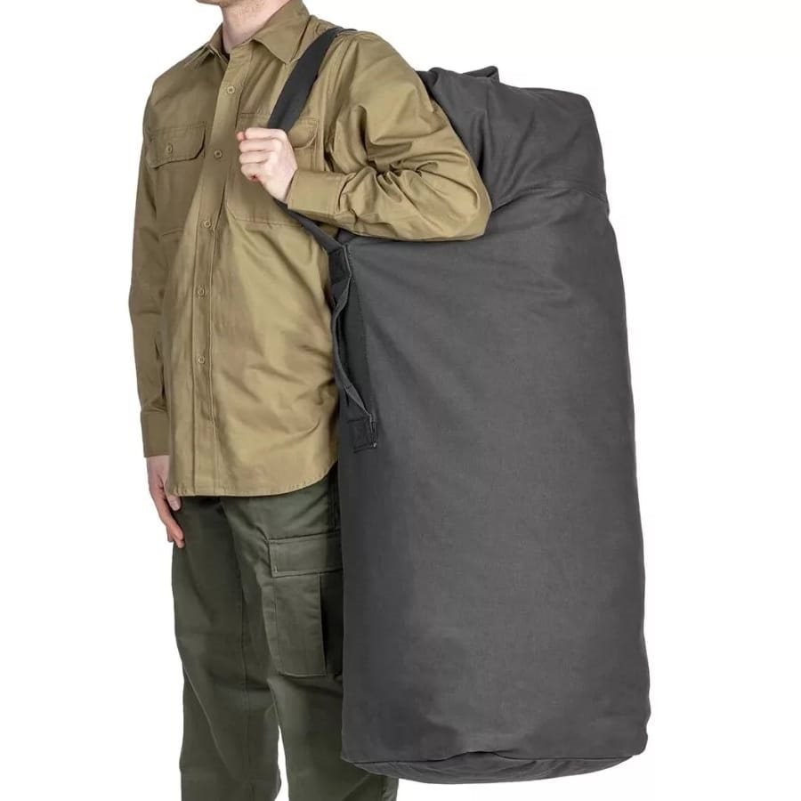 Borsa classica in stile US Army. Dotata di maniglia per il trasporto a mano e tracolla per essere indossata a spalla. Materiale: 100% cotone. Dimensioni: 125 x 75 cm.