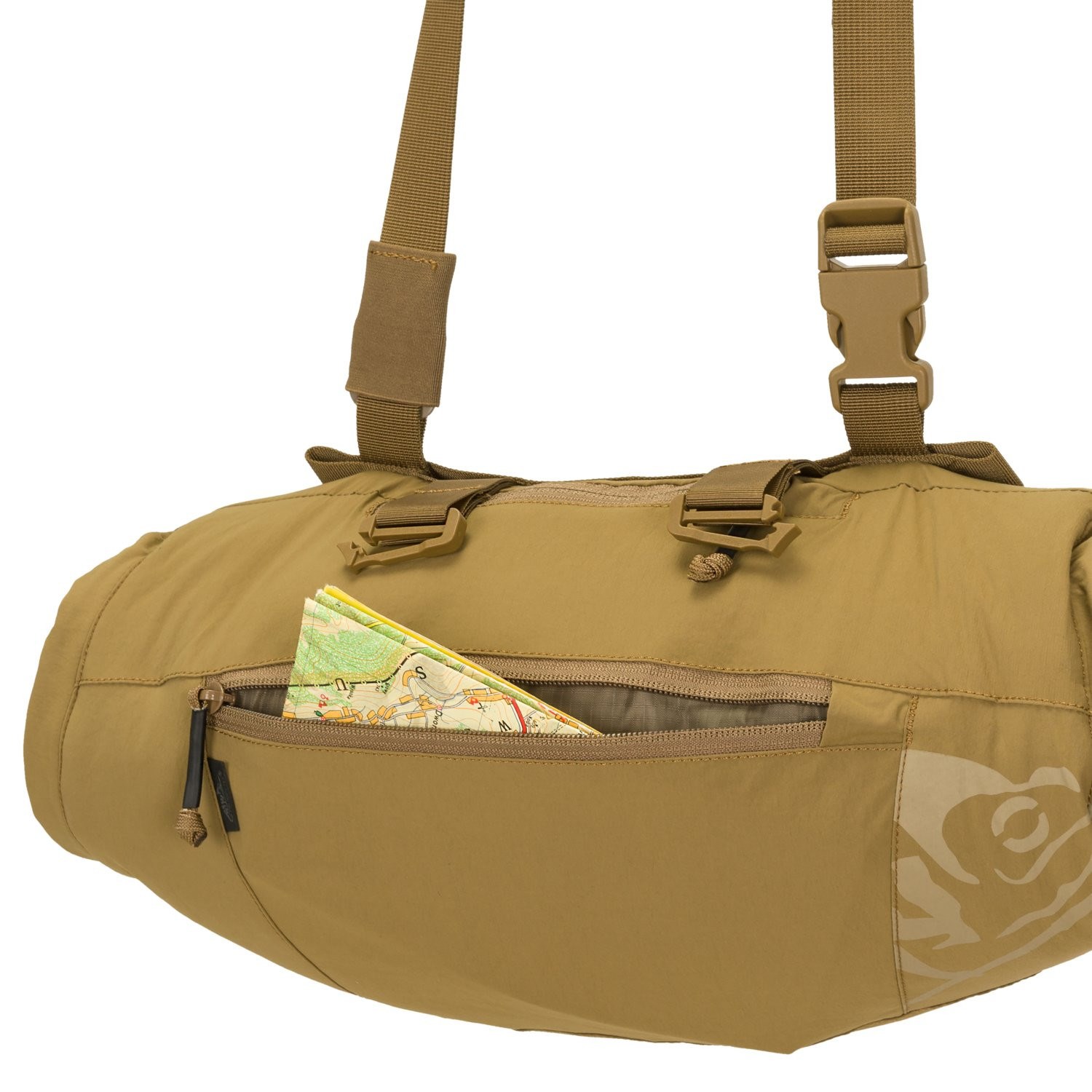 L'imbottitura del riscaldatore è realizzata in materiale Climashield Apex di alta qualità con un peso di 67 g, che mantiene il calore anche quando è umido. Inoltre, l'interno è rivestito con uno speciale materiale in poliestere a pelo lungo, che accelera il processo di riscaldamento e aiuta a mantenere il calore. Se necessario, all'interno troverete anche una piccola tasca per inserire un riscaldatore chimico. All'esterno del riscaldatore sono presenti due tasche piatte con chiusura YKK®. Queste tasche sono ideali per riporre piccoli oggetti come chiavi dell'auto, portafoglio o smartphone. La tracolla staccabile di 25 mm di larghezza consente di indossare lo scaldino al collo o in vita. Se questa soluzione non è adatta, due fibbie Duraflex® possono essere utilizzate per fissarlo a qualsiasi MOLLE/PALS chestrig.