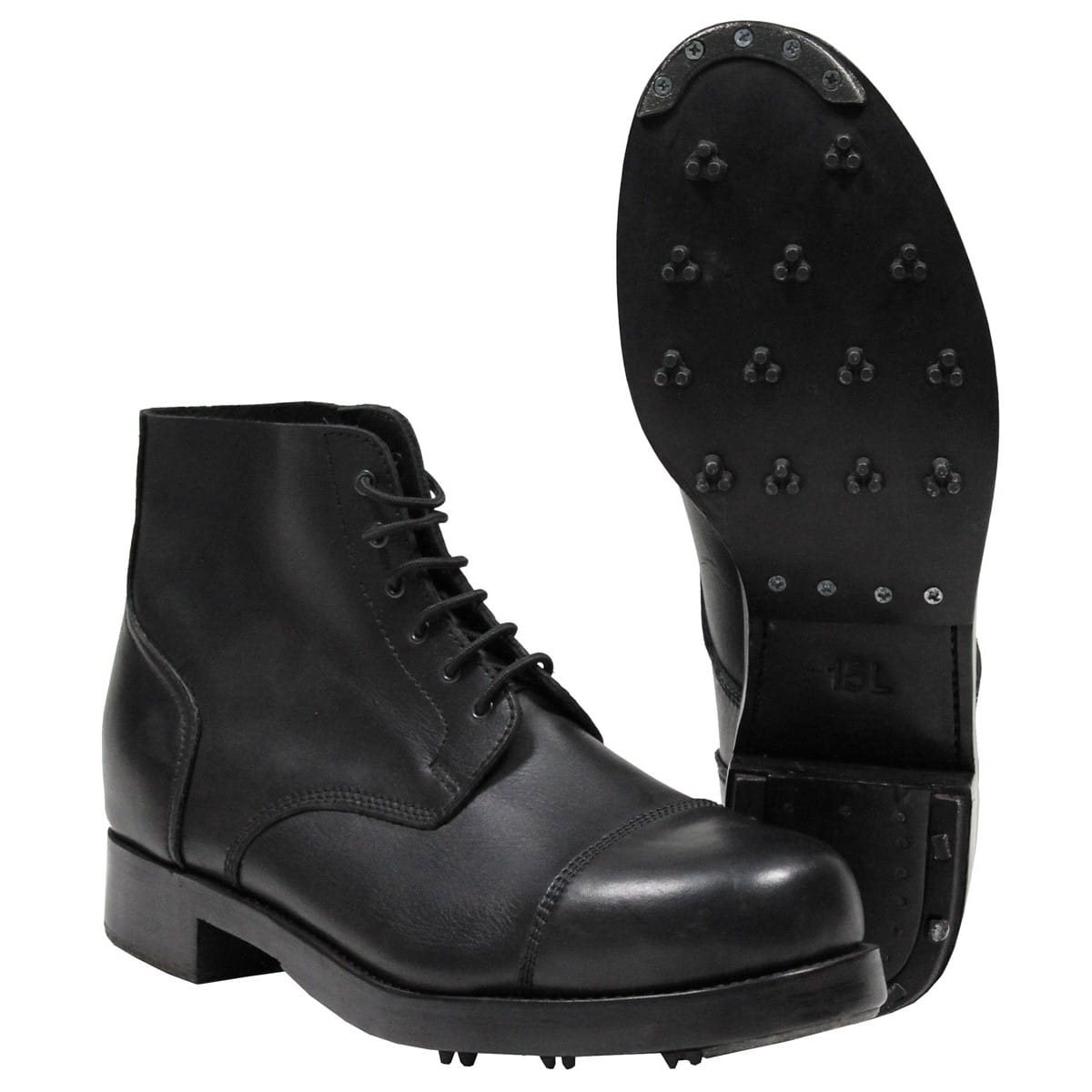Scarpe da parata provenienti dalle scorte dell'esercito britannico. Le scarpe sono interamente in pelle e coprono la caviglia. Sulla suola, compresa la punta, sono presenti rinforzi metallici. Ulteriori informazioni