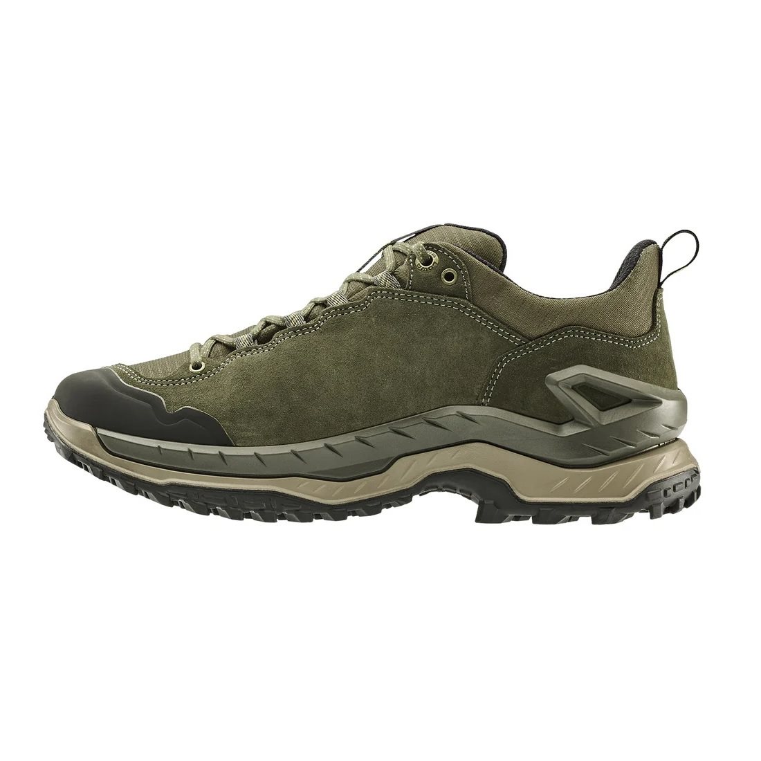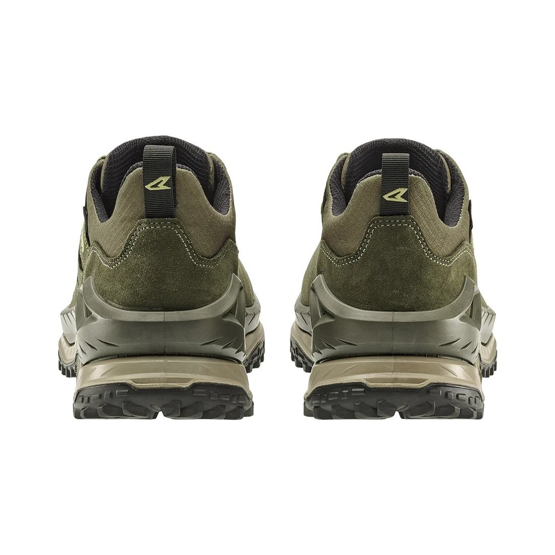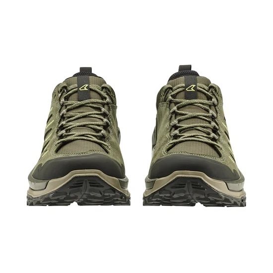 La scarpa da trekking dinamica INNOVO GTX LO colpisce per l’intersuola LOWA® DYNAPU® comodamente ammortizzata con doppia iniezione e per il battistrada aggiornato con un disegno pronunciato. Questo garantisce un’aderenza ottimale grazie ai tasselli orientati in tutte le direzioni e a una maggiore superficie di contatto con il terreno. Questo modello porta il comfort durante l’escursionismo a un nuovo livello e utilizza una resistente combinazione di pelle scamosciata e tessuto, una membrana impermeabile GORE-TEX e diversi pannelli traspiranti. Elementi pratici sono anche la protezione rinforzata della punta e i passanti che facilitano la calzata e la rimozione. Grazie alla solida costruzione della suola e alla tomaia flessibile ma robusta, INNOVO GTX LO rappresenta una combinazione equilibrata di stabilità, supporto e dinamismo.