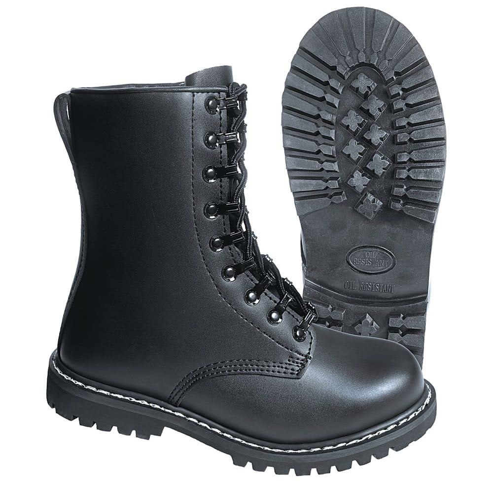 Leggendari stivali da combattimento in robusta pelle bovina nera. Comoda fodera in pelle. Suola con doppia cucitura. Materiale: tomaia - pelle bovina, fodera - pelle liscia, suola - gomma. Puntale in acciaio. Apertura imbottita. Ulteriori informazioni