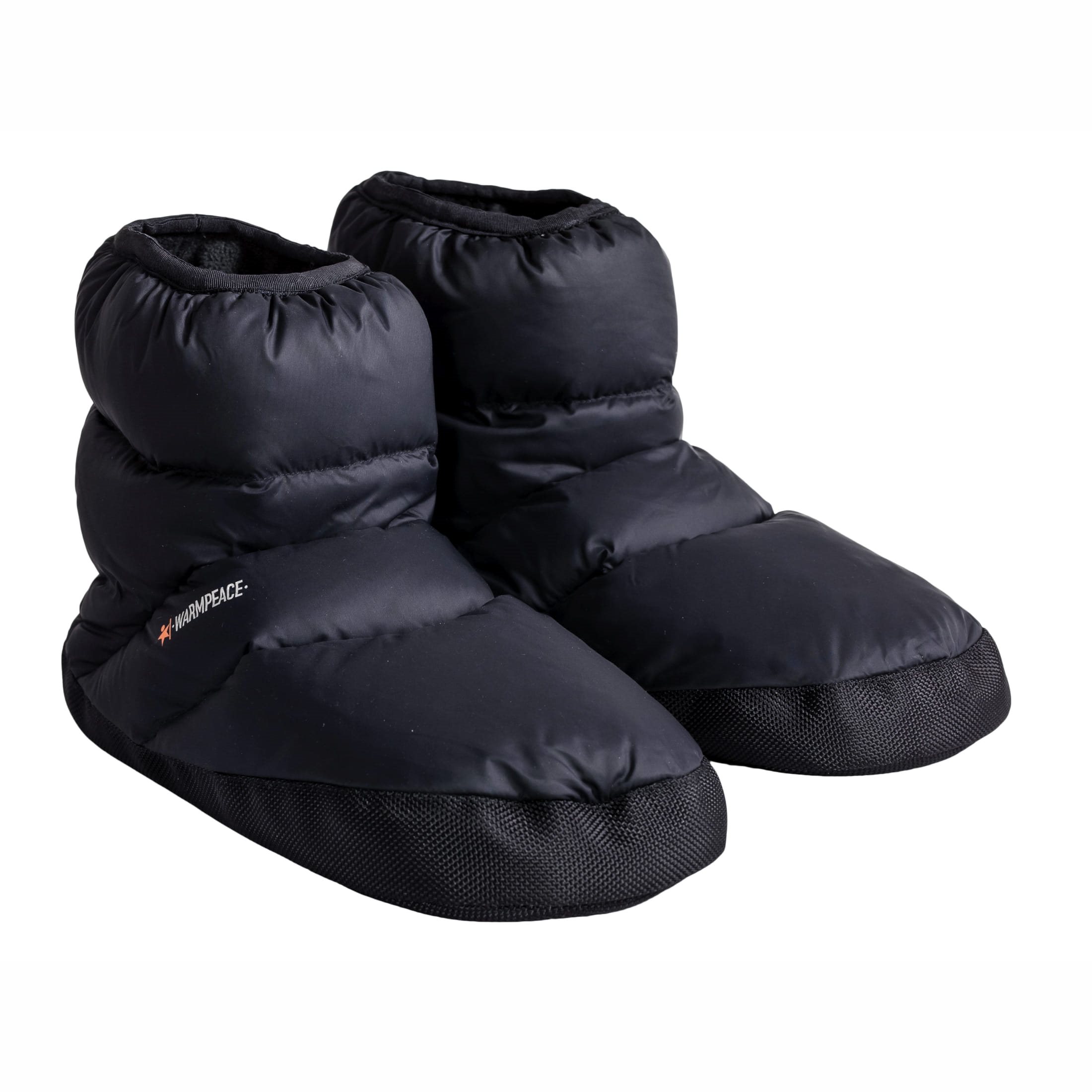 Scarpe in piuma d'anatra, estremamente leggere e calde. Ideali per un riposo più confortevole dopo aver rimosso le scarpe da trekking o da sci. Possono essere utilizzate anche come ulteriore strato isolante durante il riposo nel sacco a pelo. Non sono adatte per l'uso quotidiano.