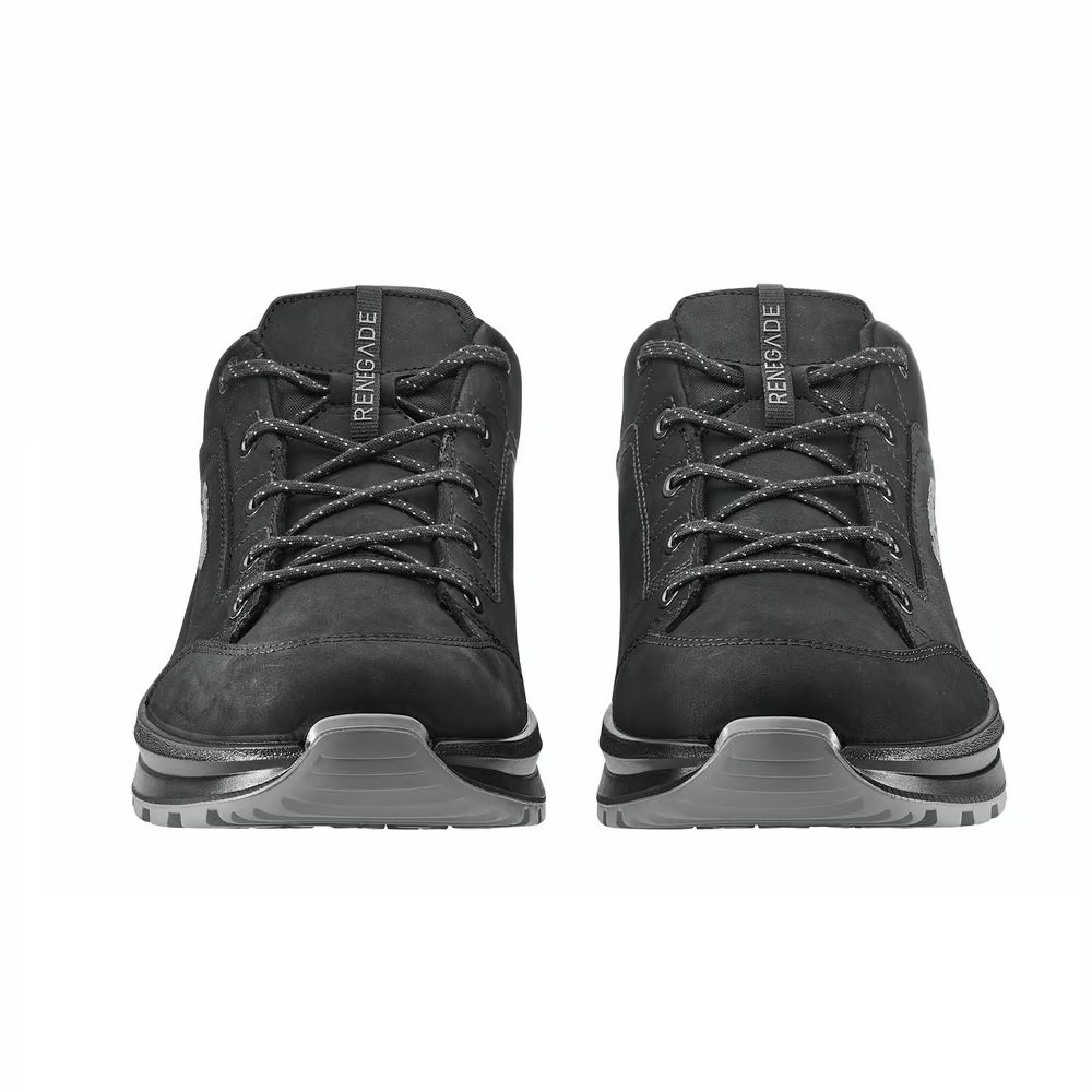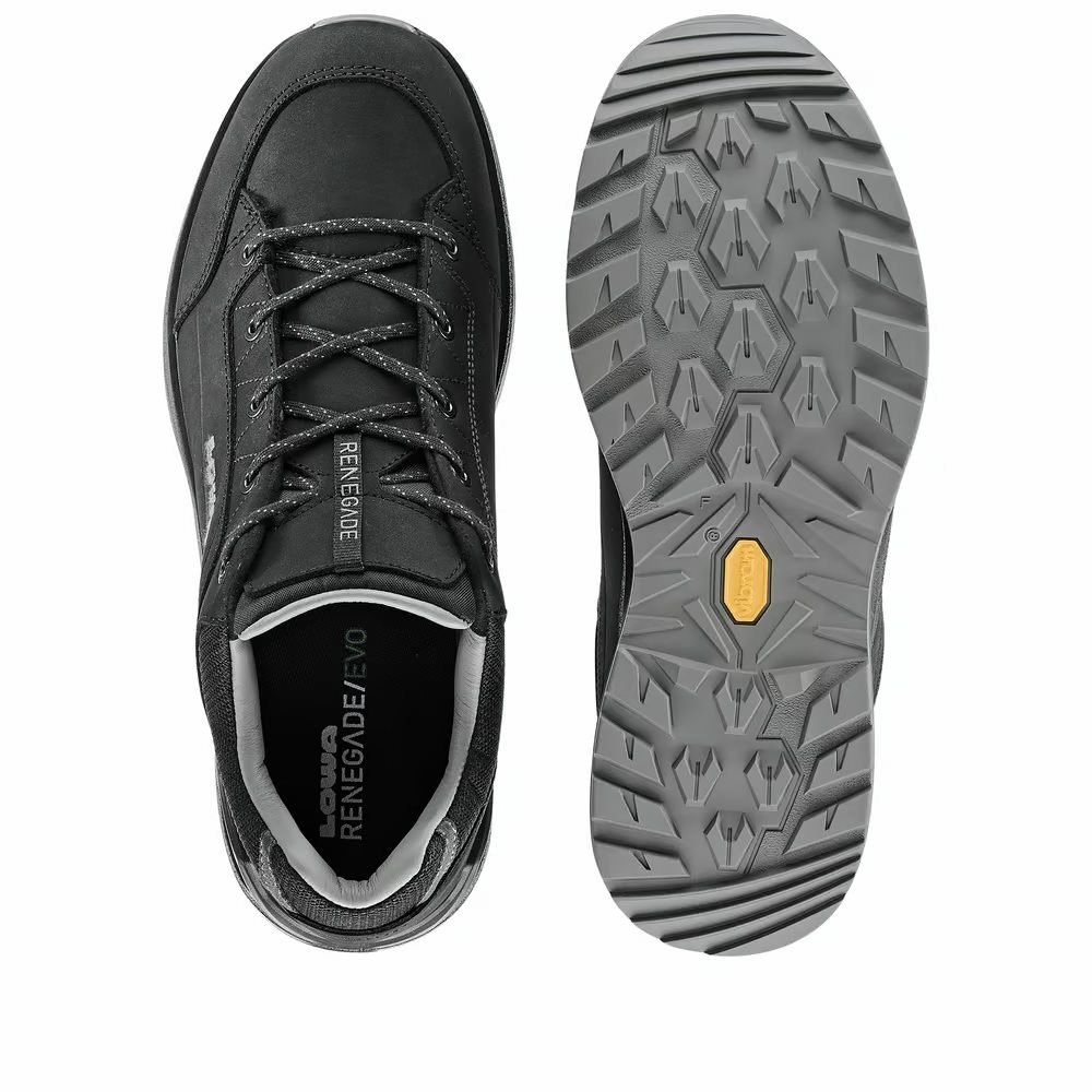 Nel 2024 LOWA presenta un'ulteriore innovazione del popolare modello RENEGADE, il più venduto al mondo. Nella produzione del nuovo RENEGADE EVO sono stati utilizzati meno pezzi di pelle per la realizzazione della tomaia. È stato eliminato l'ultimo gancio dall'allacciatura, quindi il laccio passa solo attraverso gli occhielli. Anche la suola è stata innovata e ora offre una migliore aderenza al terreno e un aspetto più elegante. La scarpa è ora utilizzabile sia per il trekking nella natura che per il turismo urbano.
