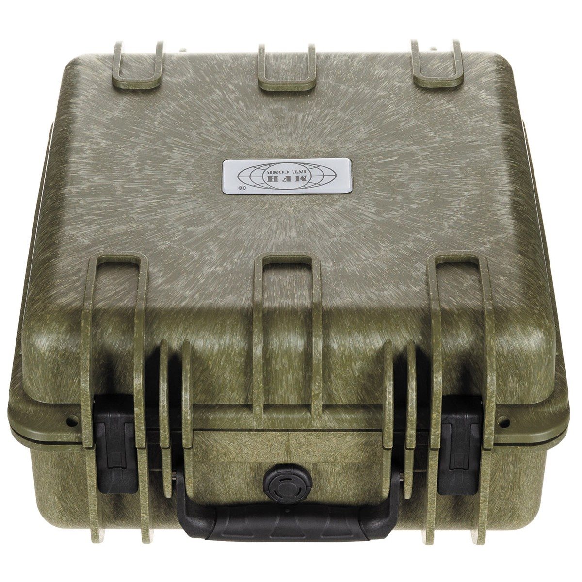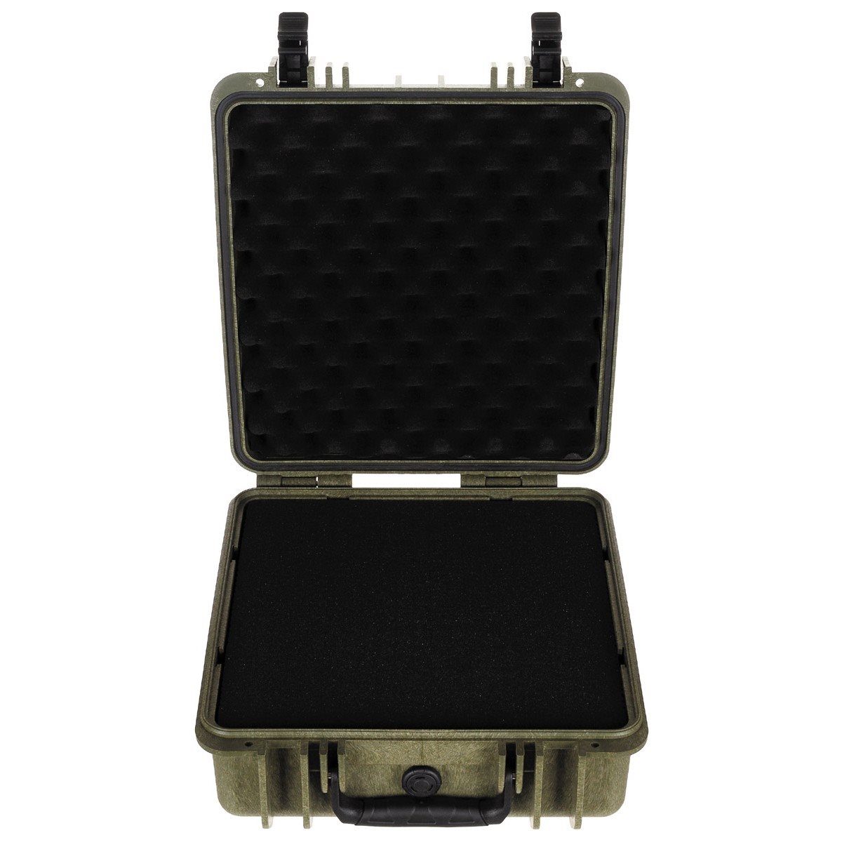 Scatola di trasporto in plastica verde impermeabile. Dimensioni: 36x42x20 cm. Interno con imbottitura in schiuma pretagliata 1x1 cm.