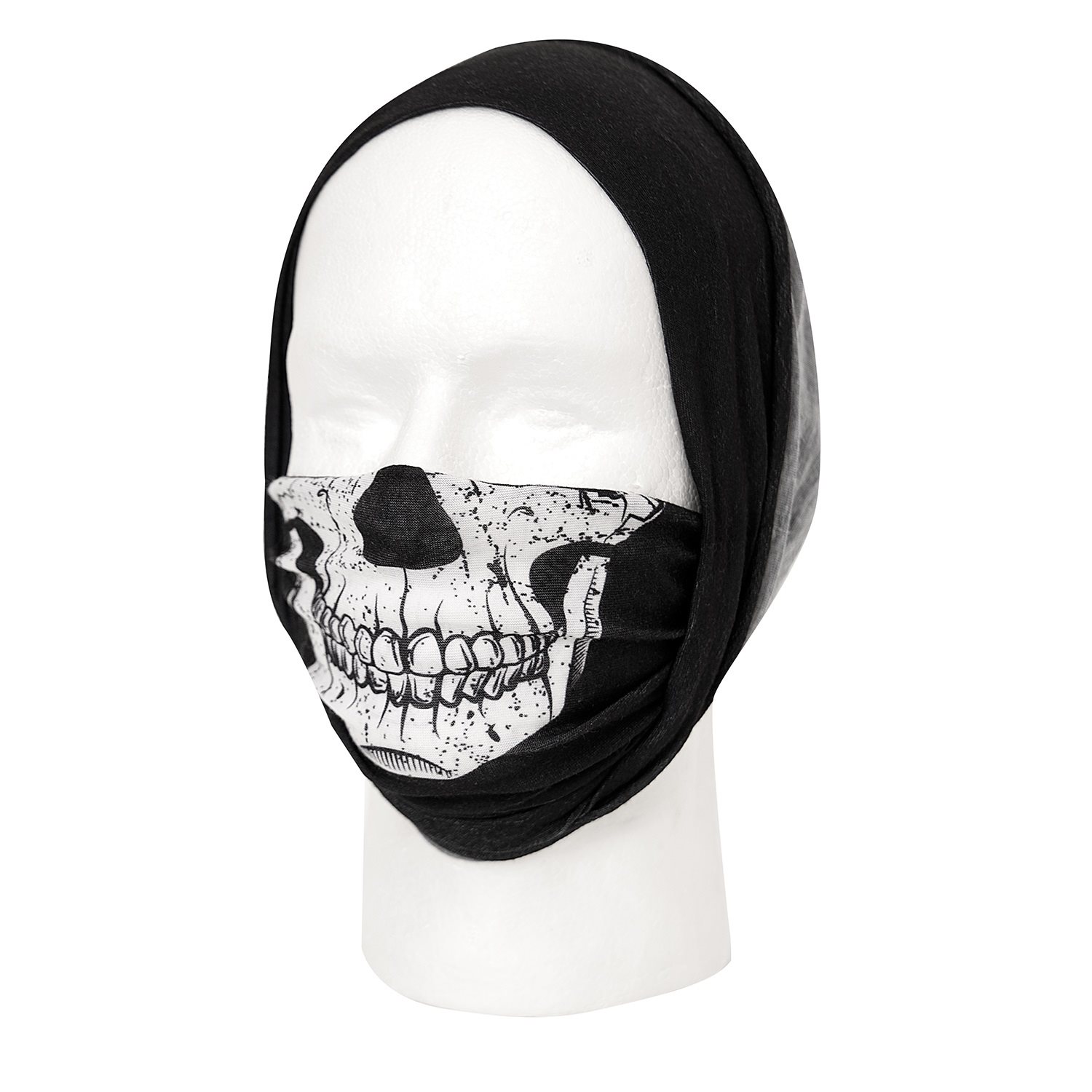 Scialle multifunzionale nero con teschio bianco, ovvero la parte inferiore del cranio. Senza cuciture, a forma di tubo.