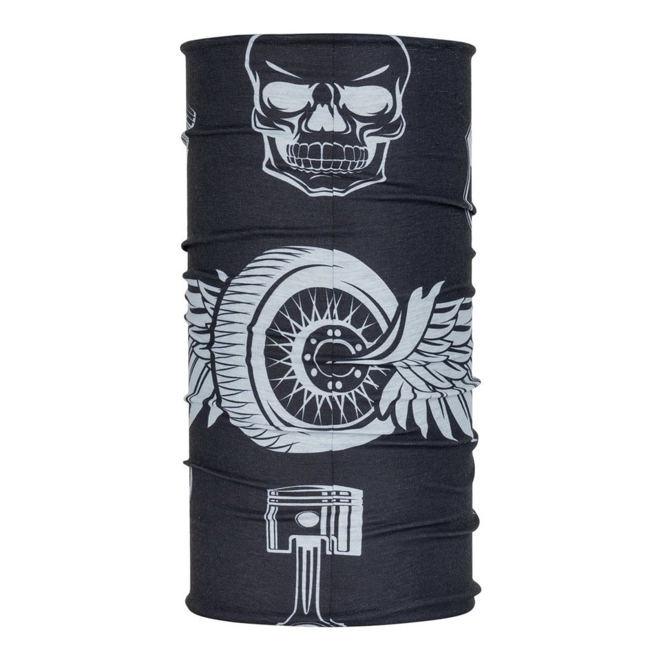 Sciarpa a forma di tunnel che può essere indossata in molti modi. Assorbe il sudore dal corpo, si asciuga rapidamente, è leggera, piacevole al tatto e traspirante. Stampa motociclistica. Materiale: CoolMax. Ulteriori informazioni