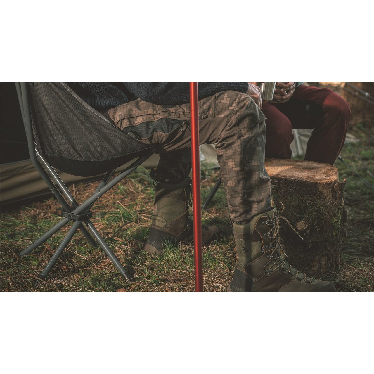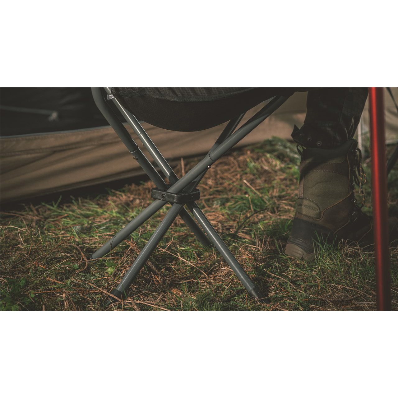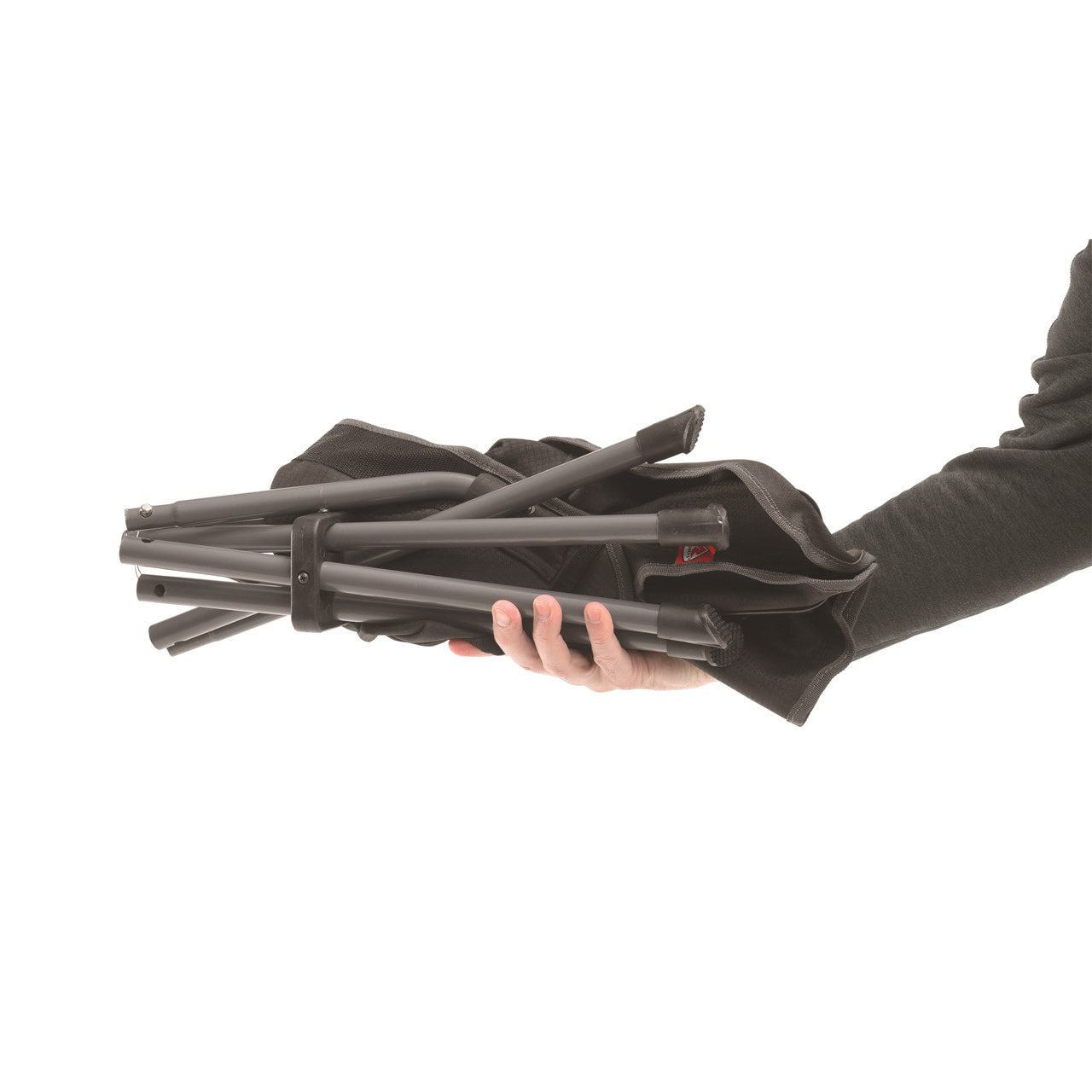 Pratica sedia pieghevole con seduta alta. La struttura è composta da quattro tubi in acciaio, il rivestimento è realizzato in poliestere Oxford 600D altamente resistente con una sottile rete che consente un'ottima ventilazione della schiena. Una volta ripiegata, la sedia occupa uno spazio minimo ed è quindi facile da trasportare da un luogo all'altro.