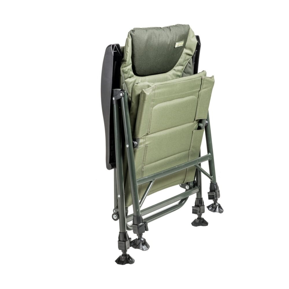Versione compatta della popolare poltrona Comfort Quattro con telaio in acciaio estremamente resistente con una portata di 175 kg. La regolazione dello schienale avviene sollevando i braccioli e inclinandoli nella posizione desiderata. Il materasso è realizzato in materiale P-POL 600D resistente, durevole e facilmente lavabile. La sedia è dotata di nuovi esclusivi blocchi di fissaggio delle gambe, che possono essere azionati semplicemente premendo o calpestando. Naturalmente sono presenti anche piedini oscillanti di alta qualità per evitare l'affondamento.
