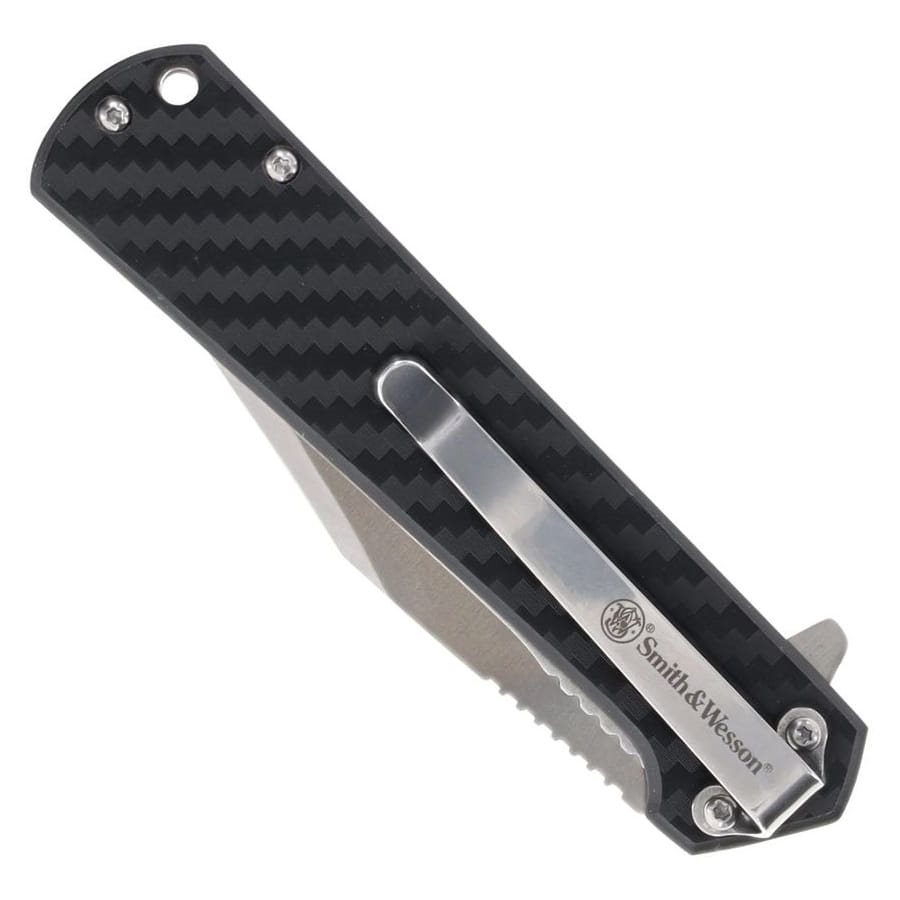 Set composto da coltello in acciaio inossidabile e clip per il trasporto di denaro contante. La lama con filo liscio è realizzata in acciaio inossidabile e presenta una delicata finitura satinata. L'apertura con una sola mano è facilitata dal flipper integrato. Una volta aperto, il coltello è bloccato da una chiusura di sicurezza di tipo Linerlock. I manici sono in plastica, con una superficie che ricorda il carbonio. Anche il fermaglio per banconote è in plastica.