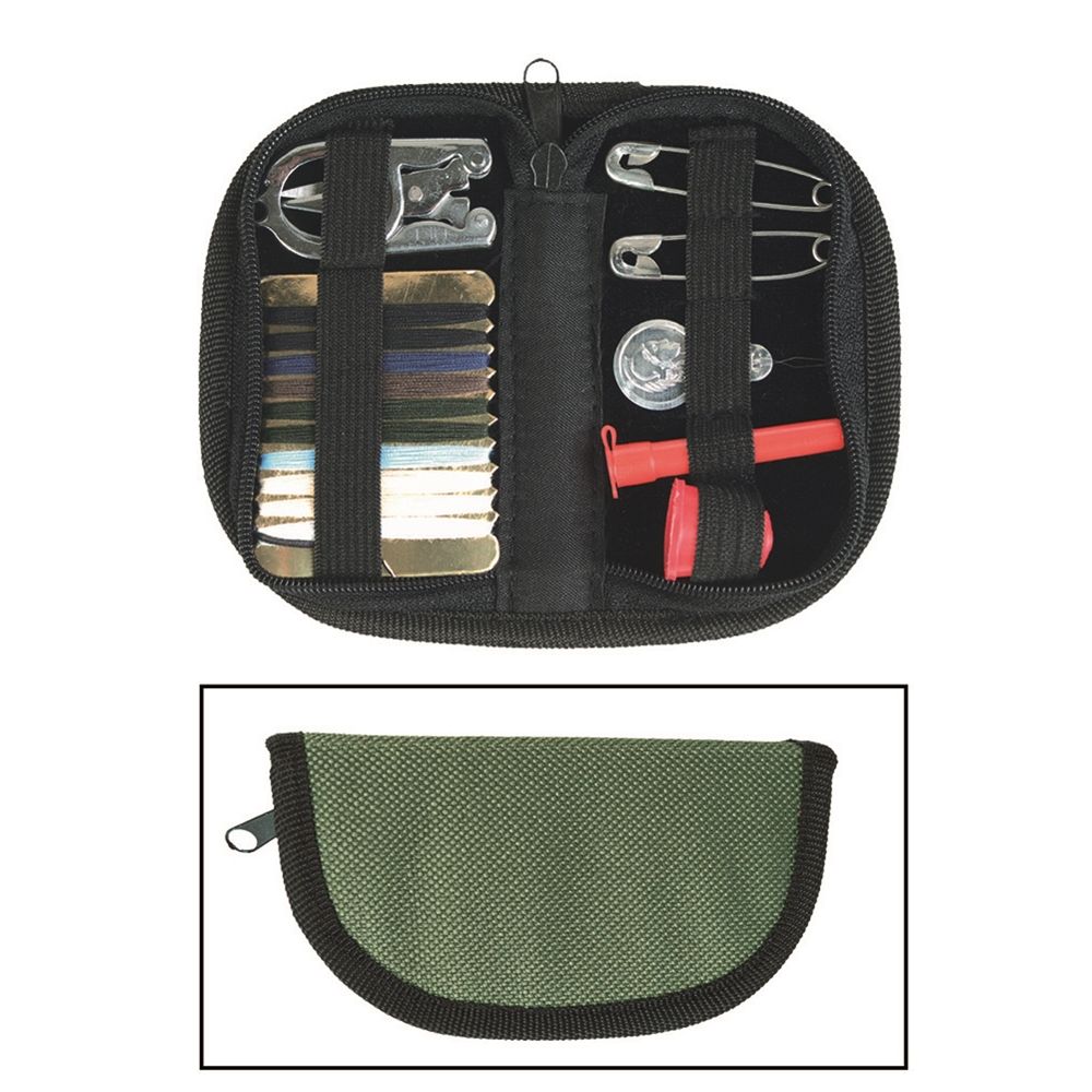 Piccola e pratica custodia in nylon con accessori per cucire (kit da cucito) per riparazioni di emergenza di abiti e attrezzature. Ulteriori informazioni