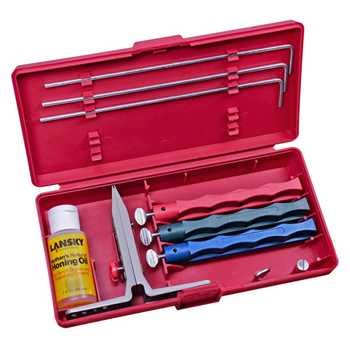 mantiene un'inclinazione precisa durante tutta la fase di affilatura Angolo di 17° per un'affilatura delicata Angolo di 20° per coltelli da cucina Angolo di 25° per coltelli da caccia e da outdoor Angolo di 30° per coltelli destinati al taglio di tappeti, ecc.